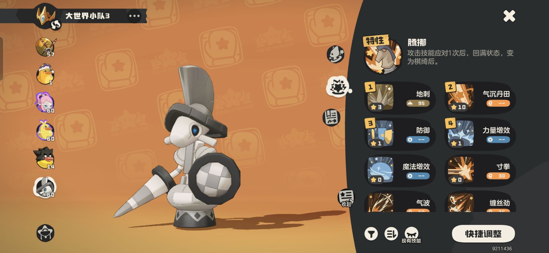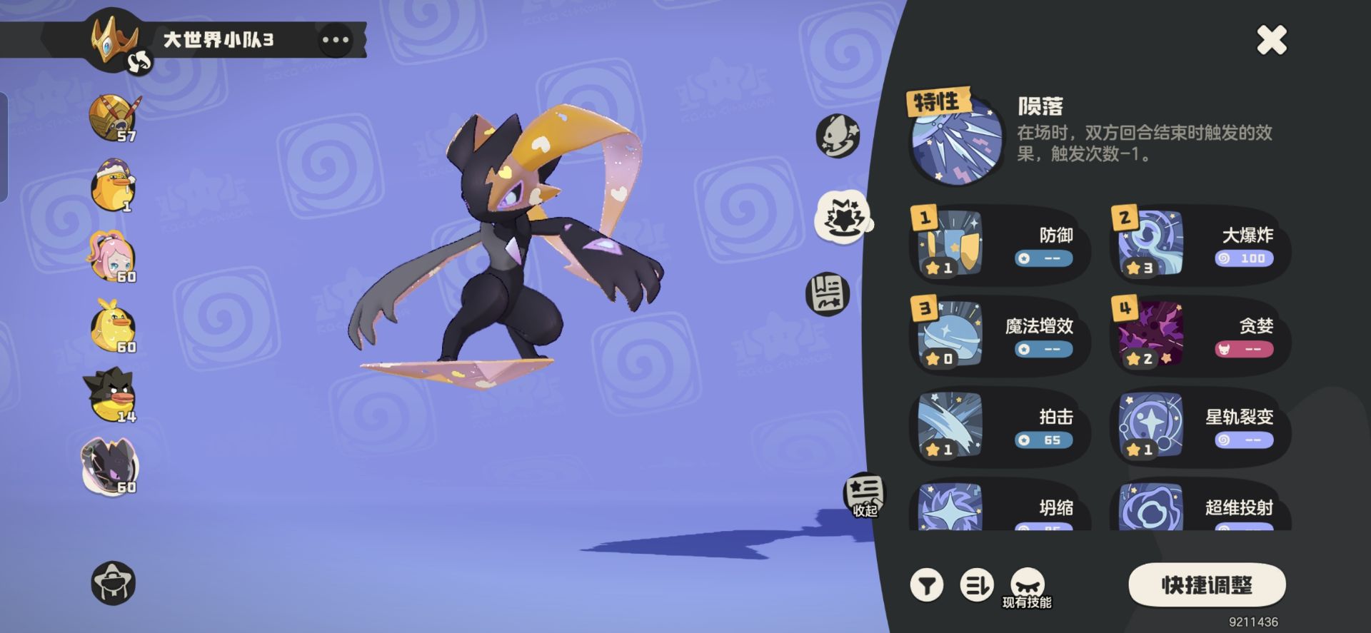 1:精灵使用:落陨星兔(60级不需要培养)。