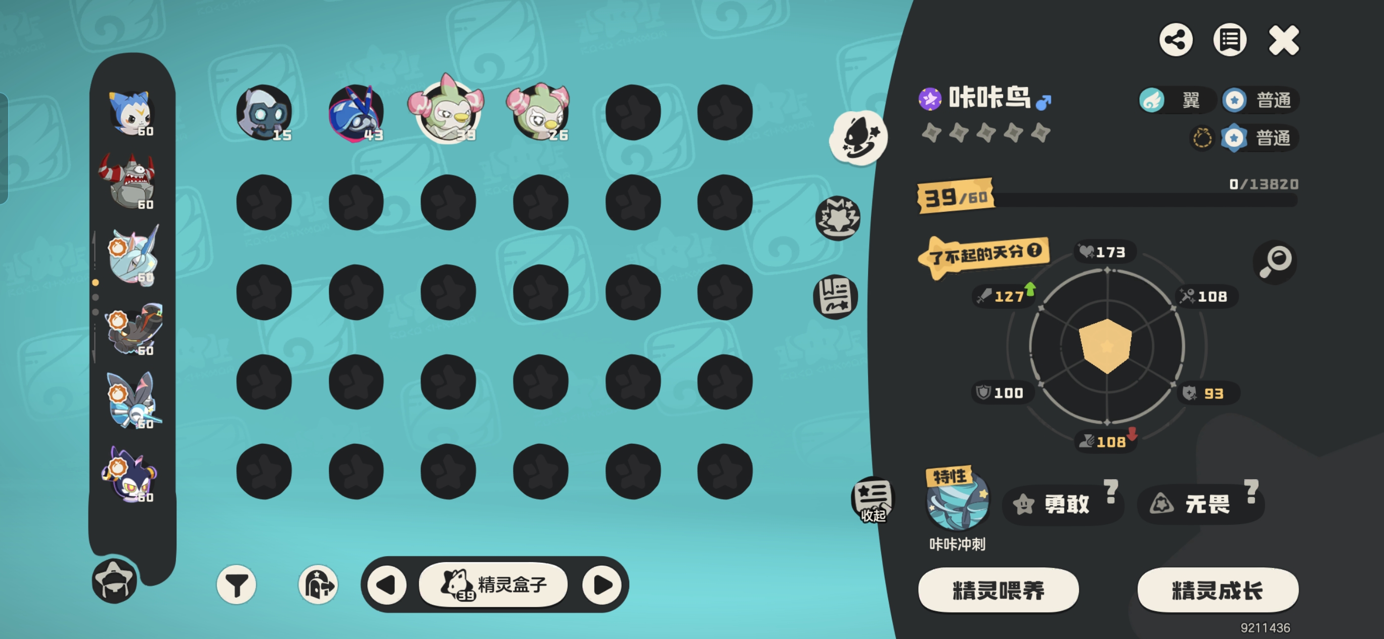 咔咔鸟最好是《了不起天分》不是也没有关系一般天分也能用,但是属性不要是减魔攻和速度生命的即可,稳点话最好是了不起天分和加魔攻的。