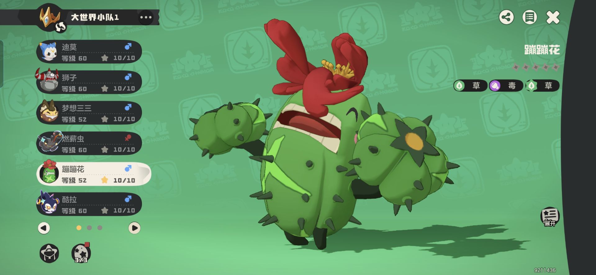 ②如果双人跑图另外一个人带6个爱分享的精灵即可,这样更容易出现8朵花。