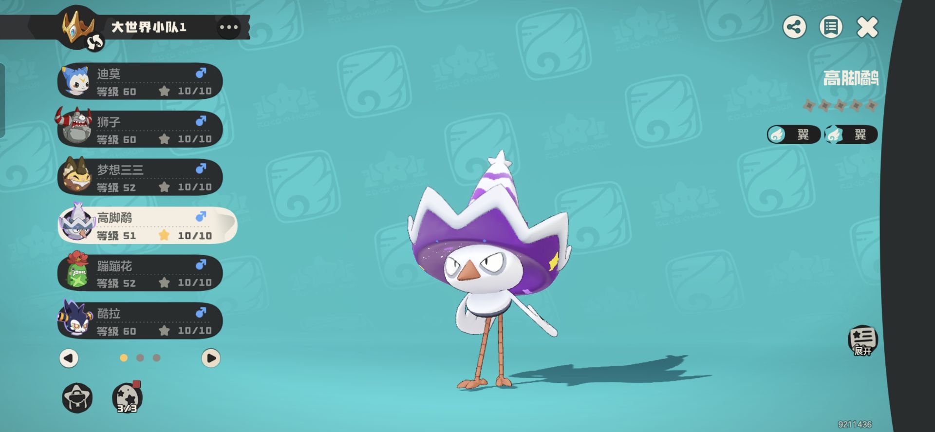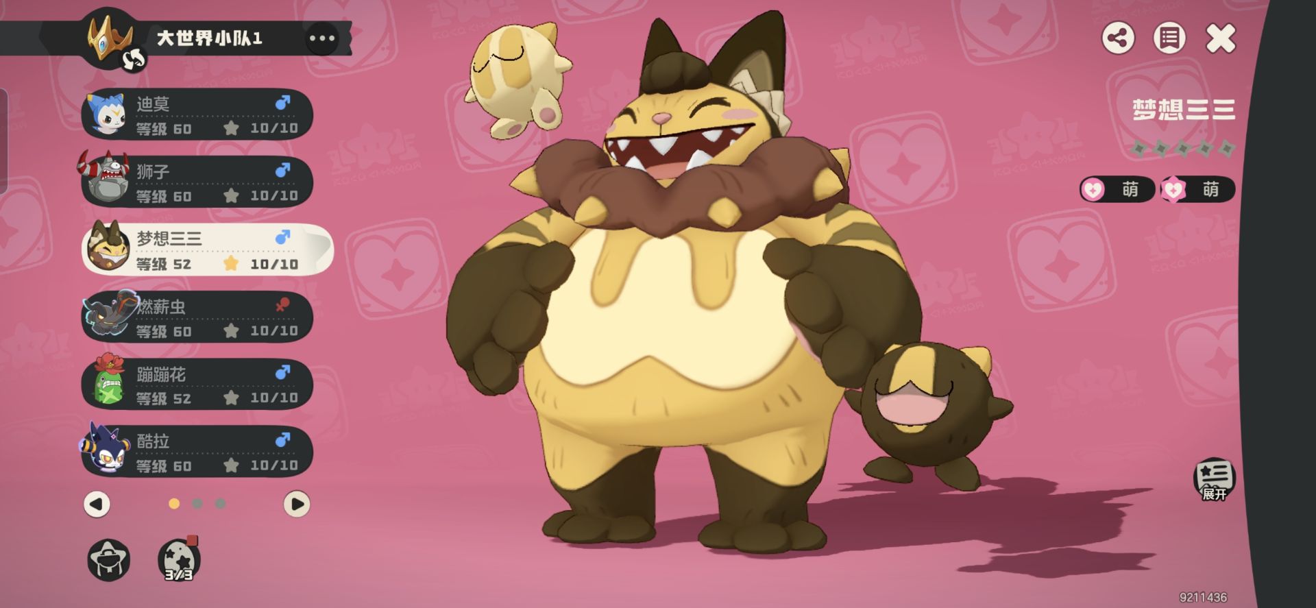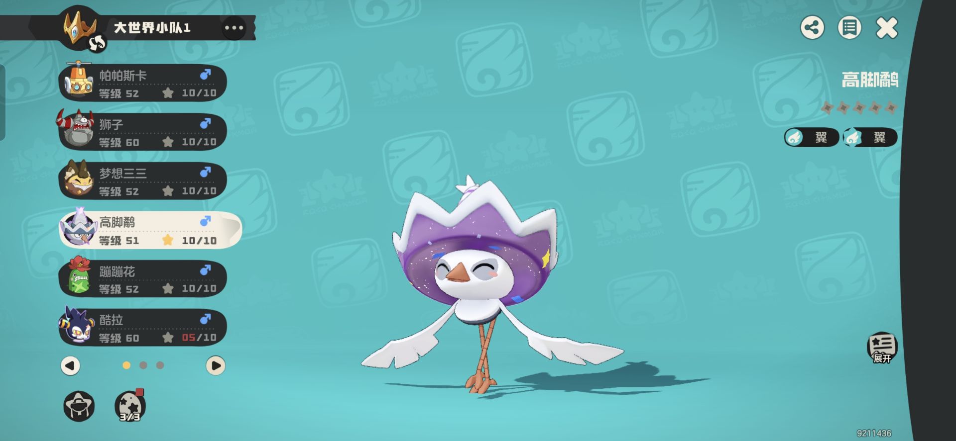 梦想三三:负责平地采集。三三换蹭蹭花和高脚鸟都是可以的,个人首选高脚鸟。