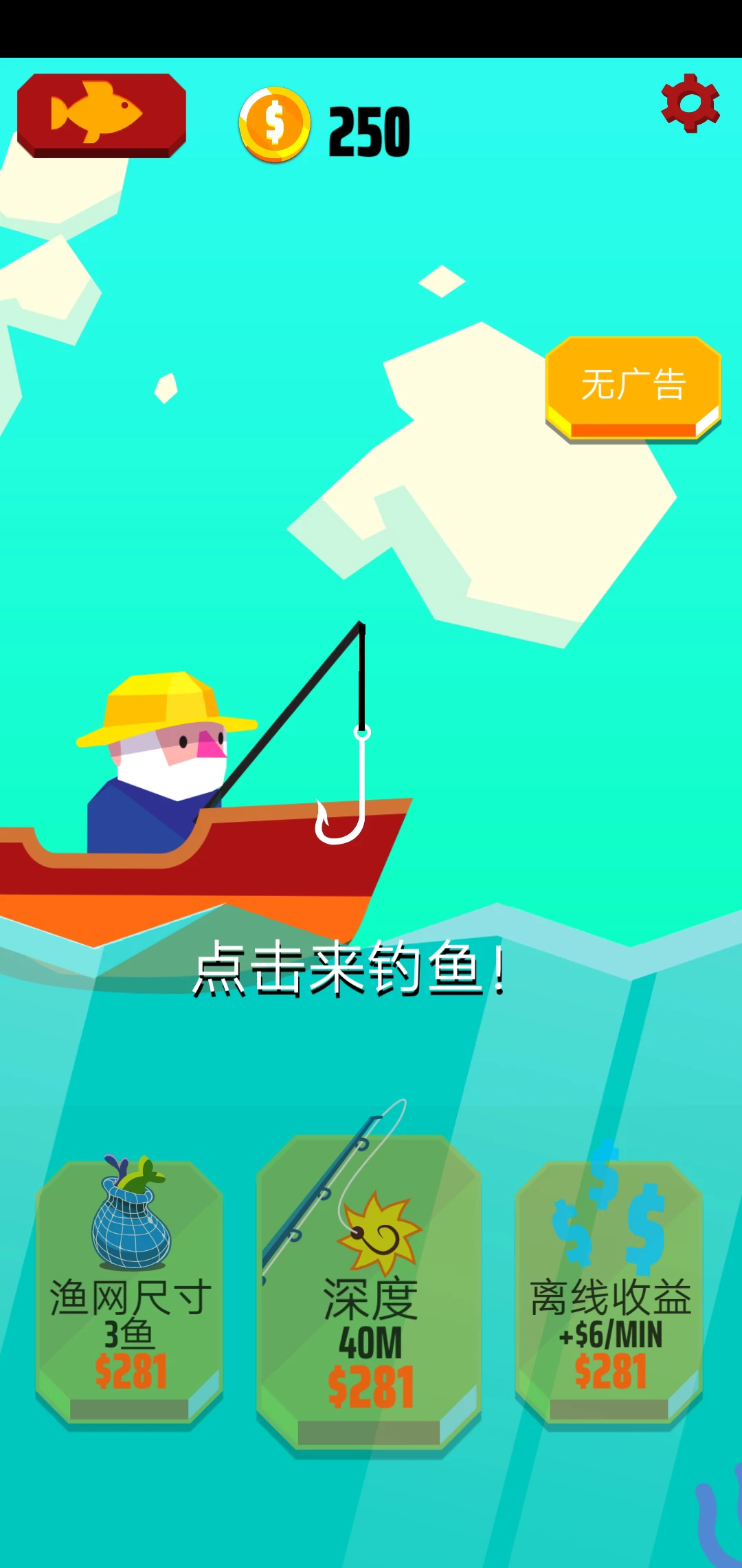 《去钓鱼!》游戏玩法很常见也很普通,但是!却以另一种方法吸引着大家,就是不同品种的鱼,大家通过钓鱼获得金币,并进行升级。鱼钩会越来越往深处去,而鱼🐠的品类也就越来越多啦~