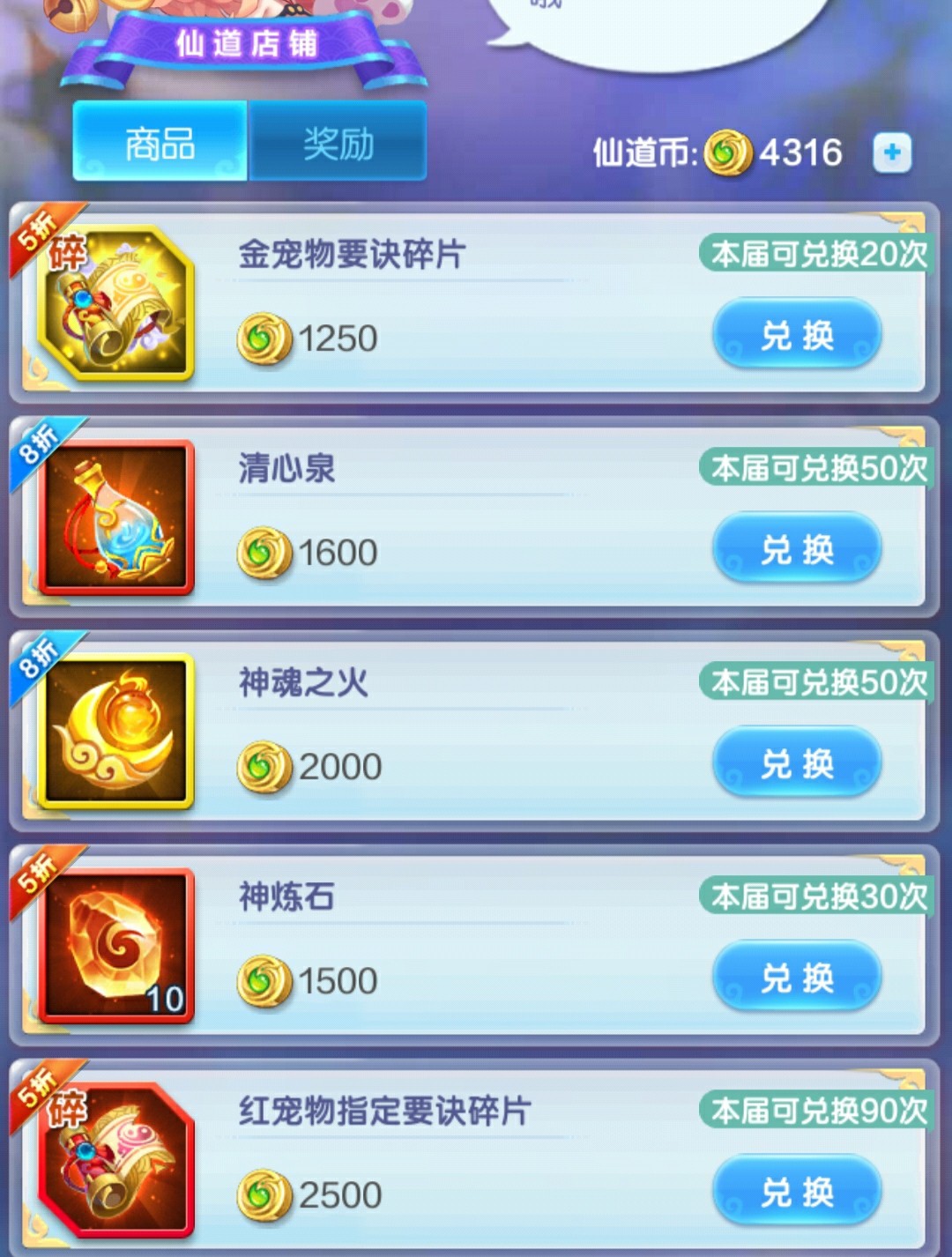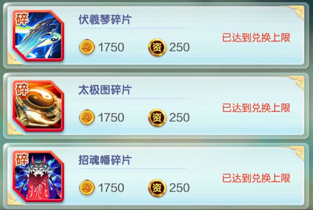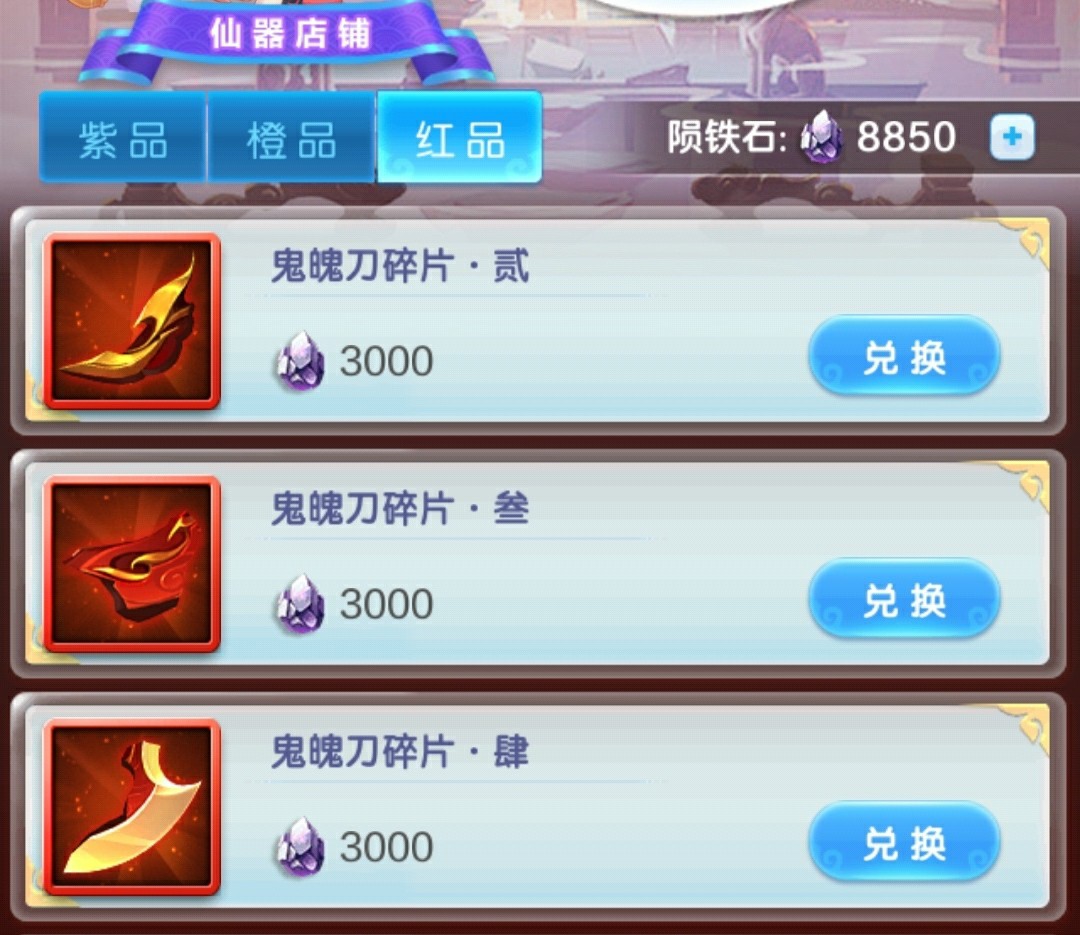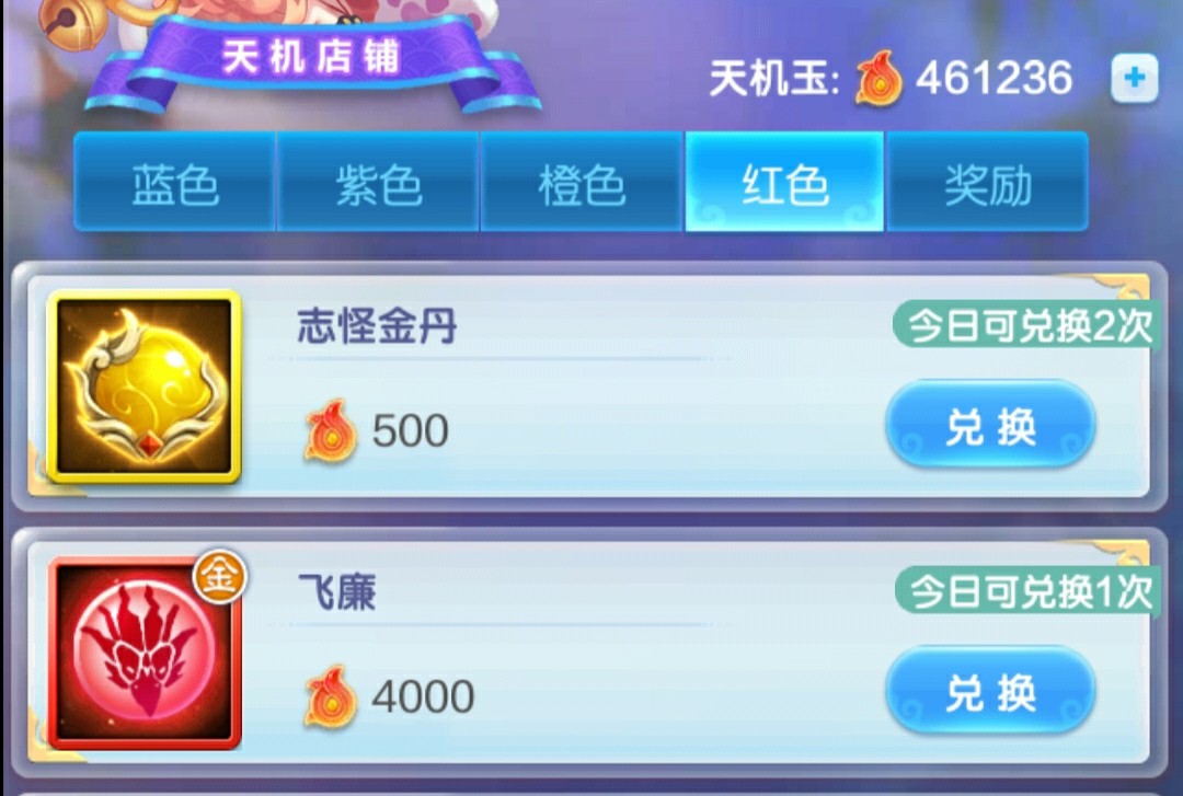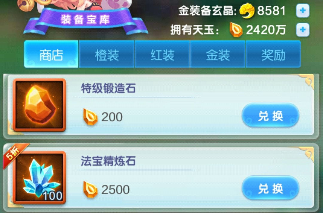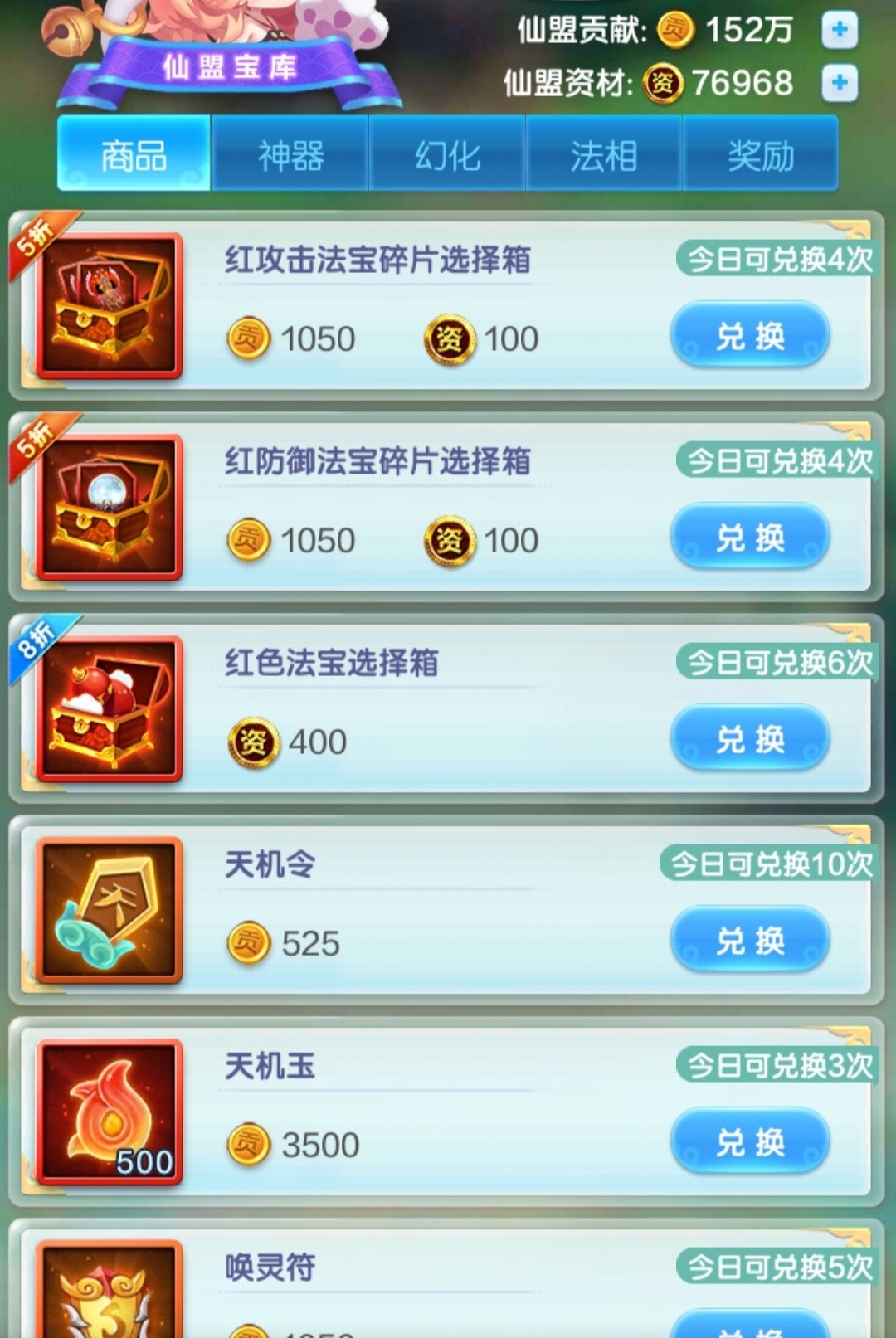 红法宝消耗资材比较多了,这个前期为了完成任务也是必买,后续如果觉得法宝溢出可以停止购买。