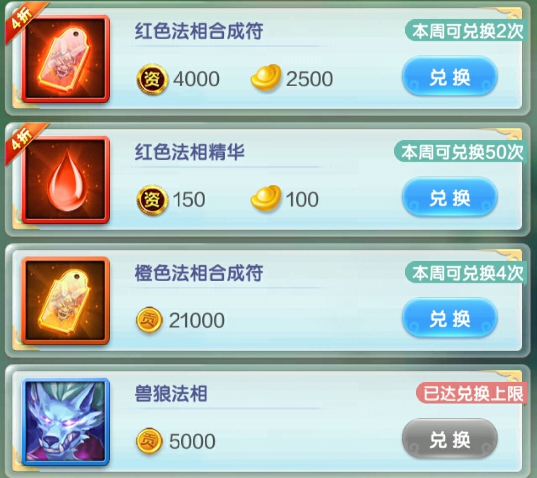 法相的话买了蓝色兽狼过渡。橙色法相直接买满,红色也买满,红色建议只买一个,橙色的可以俩个都买满。红色剩下的另一个可以等仙缘洞天慢慢赞。
