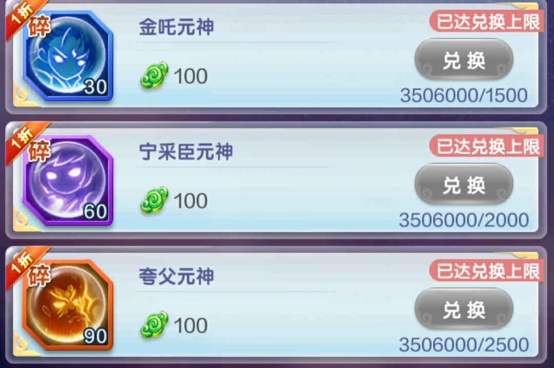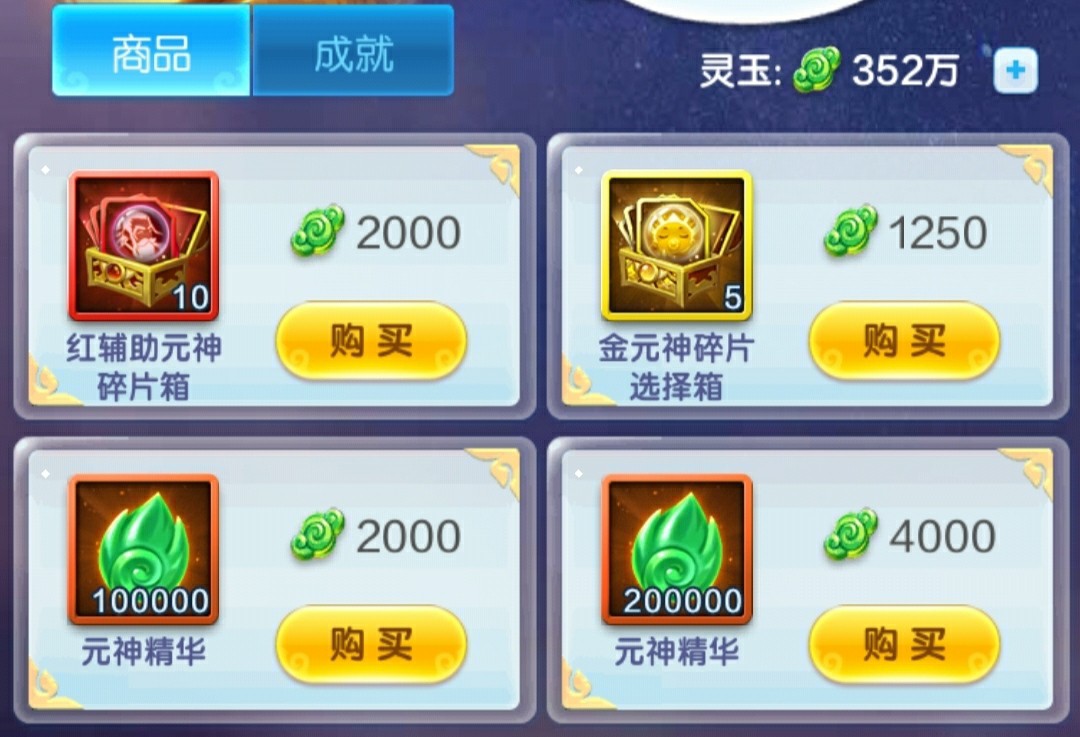 然后再保证金元神买光的情况下补红色攻击/辅助元神图鉴,优先辅助元神吧,因为来源相对于攻击元神会少一些。开完图鉴以后,保证买金元神足够的情况下再入手。