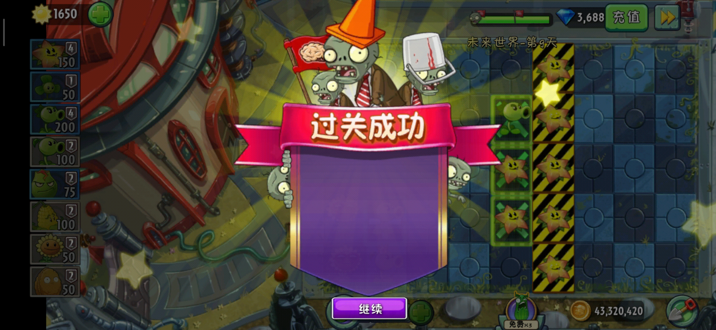 这一关的关键就是小鬼僵尸,它们出现的突兀,而且是空降。虽然星星果本身攻击就不低但是面对迪斯科3000仍然是有点发怵的。那第九天的通关攻略就说到这了!