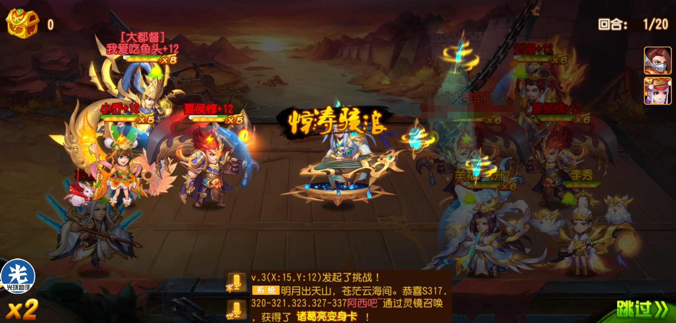 只有追魂玉石是唯一可以破釜沉舟锦囊锁血保护下的肉盾武将,赵云通过多次出击,加上追击,对夏侯惇的打击会一步步增强,再配合上神兽麒麟和年兽,击杀夏侯惇只是时间问题,回合数拖得越多,赵云的优势就越明显。