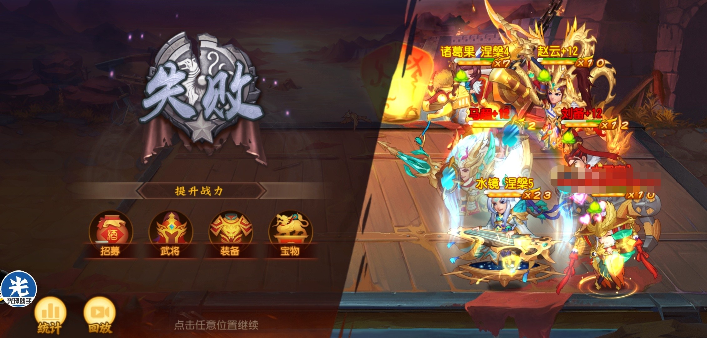 刘备佩戴有连理并蒂战法,行动后增加阵容御甲能力,保障整体阵容的生存,赵云第二回合血量全满,并且拥有超高御甲,更加不会被夏侯惇反伤击杀。