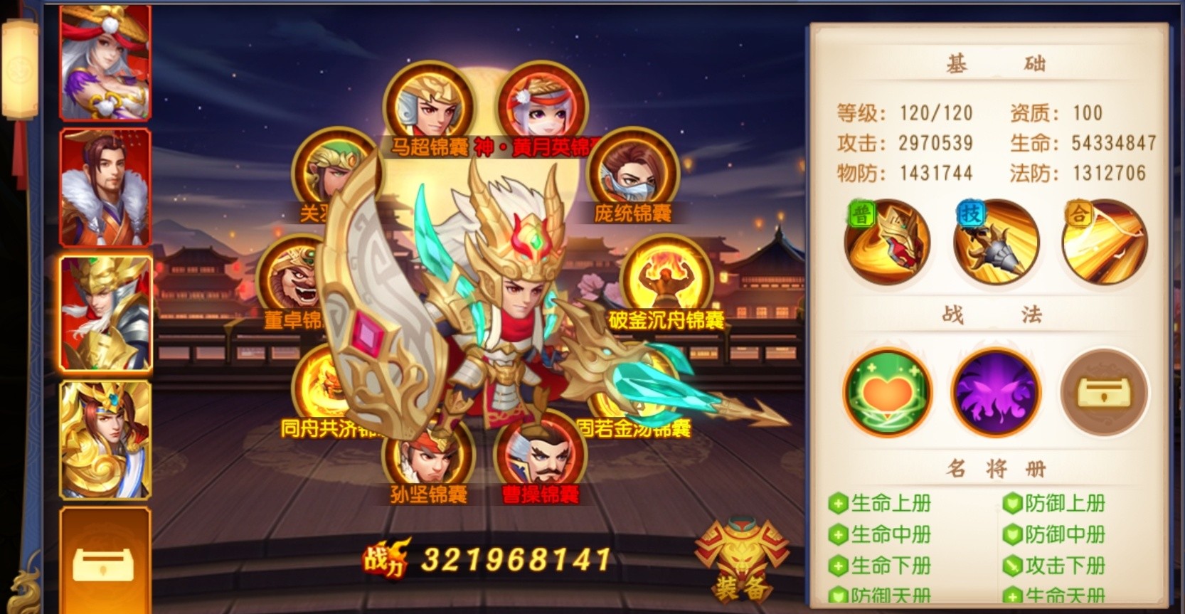 这个就是从整体出发,阵容越精悍,上阵武将没有短板,生存能力就越强,在资源不够的情况下,过度的上阵武将只会成为累赘。有减伤的光环武将黄月英,有回血加御甲的刘备,有伤害分担的肉盾马超,蜀国的小铁桶阵容就可以成型。