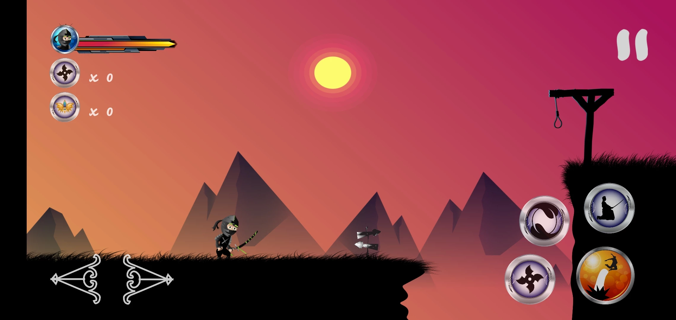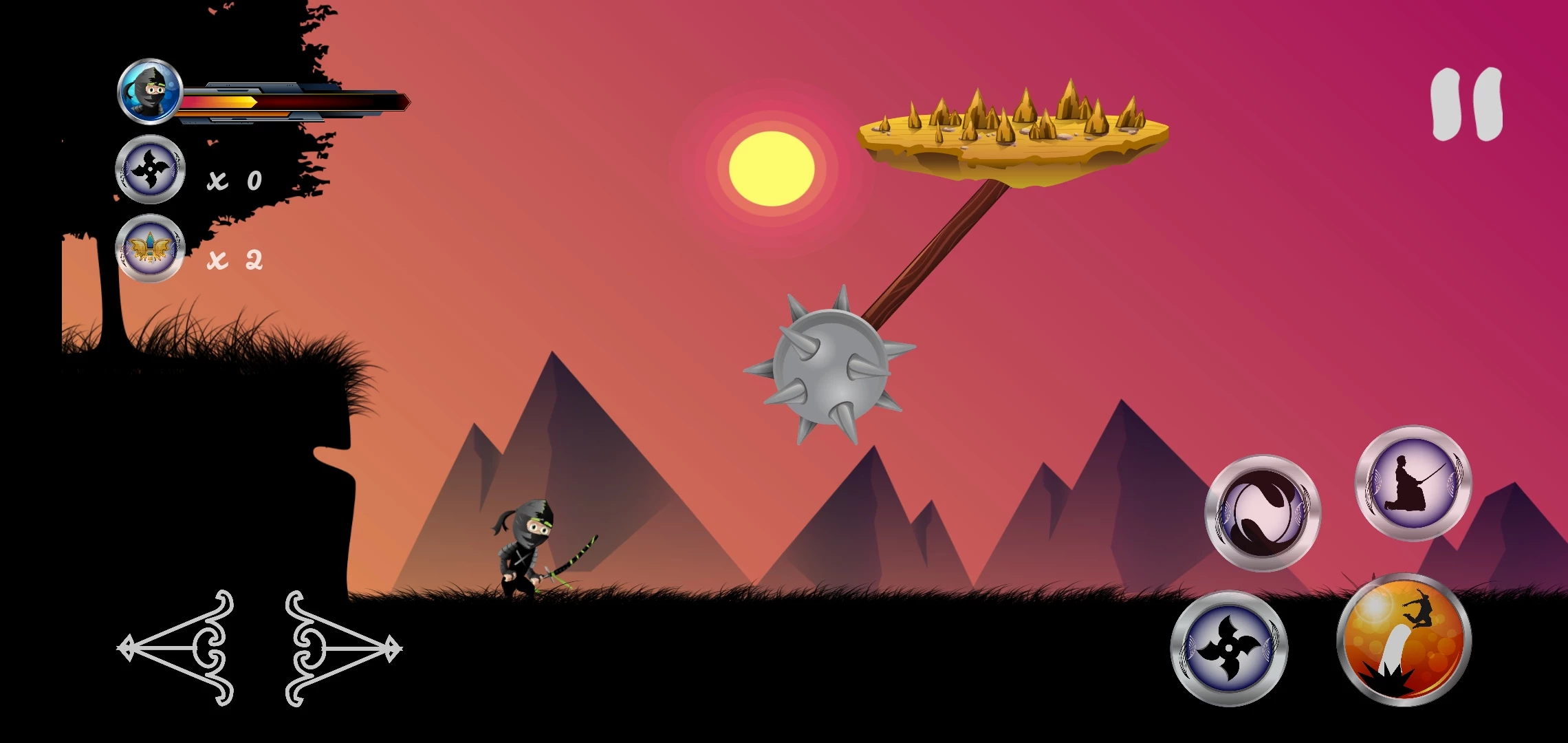 《忍者跑酷》是一款敏捷类游戏,玩家在“跑酷”过程中,需要左右手的相互配合。左手控制忍者行动的方向,右手控制忍者的动作。动作分别有四个,右下角的是跳跃,然后从下往上分别是手里剑、旋风和斩击。