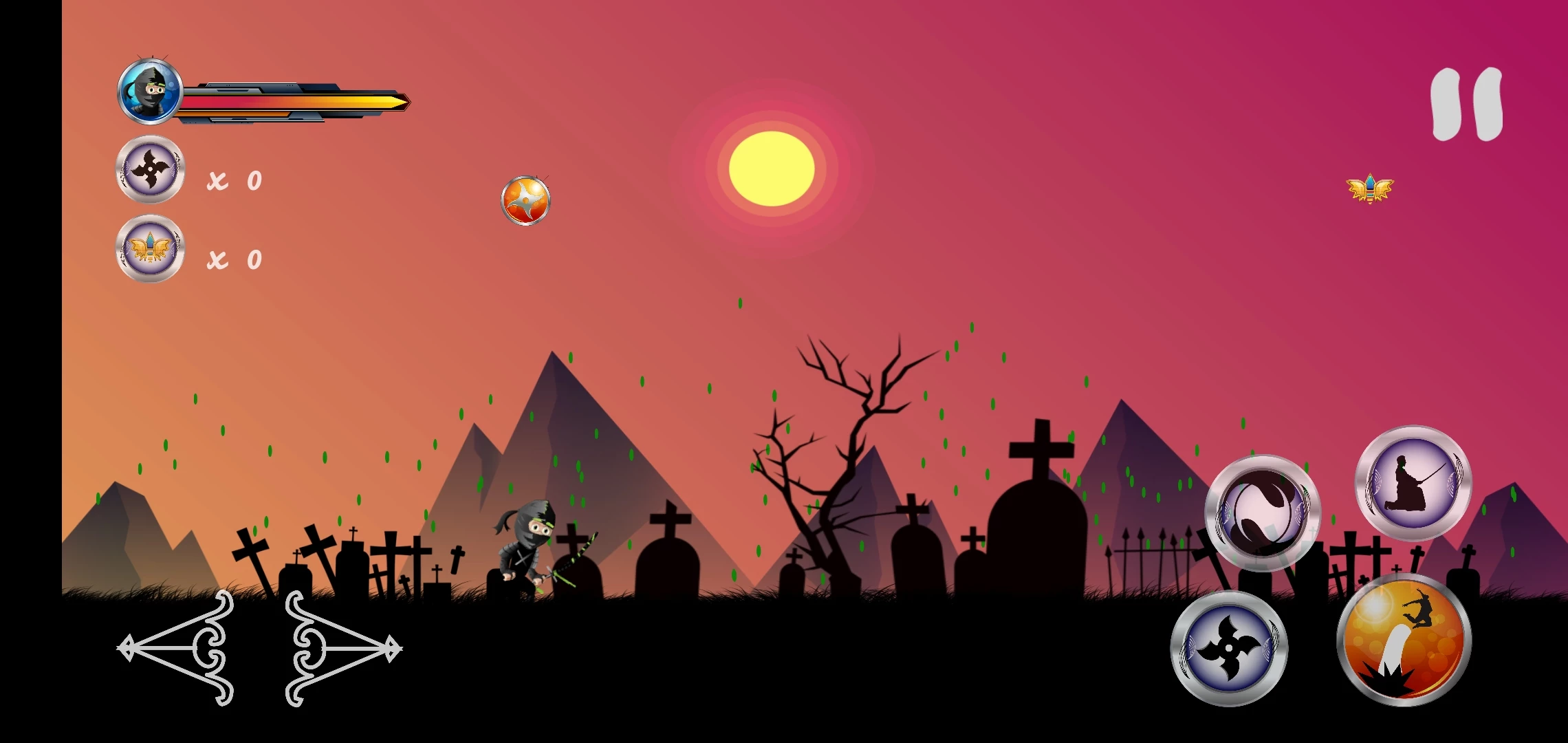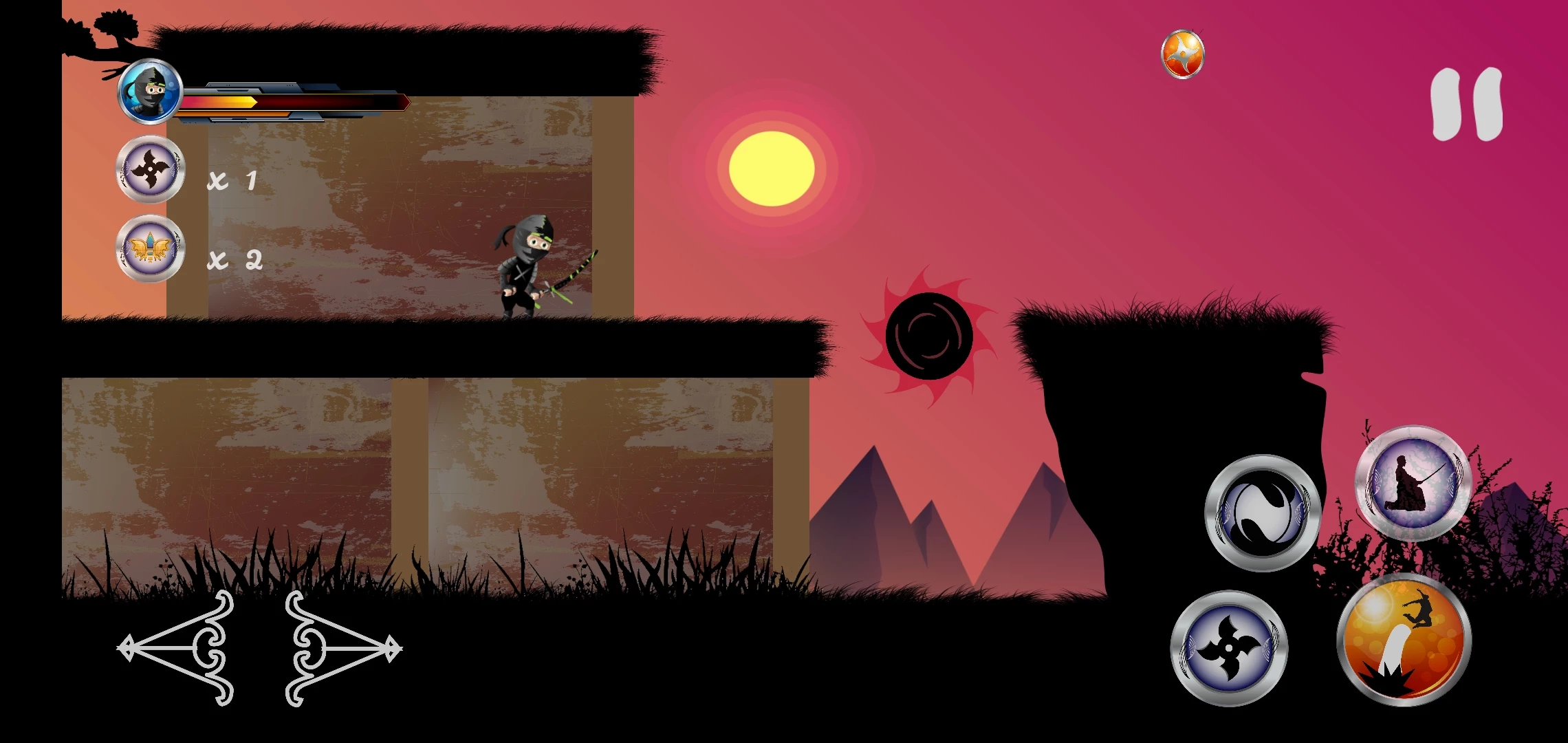 在跑酷过程中,玩家还可以收集到一些小徽章,这与其他动作相关。收集一枚圆形手里剑的徽章,玩家就获得一次使用手里剑的机会;收集一枚黄色徽章,就能获得一次使用旋风的机会。手里剑和旋风能对较远距离的敌人造成伤害。斩击则是忍者自带的动作,但是由于斩击是近距离攻击,所以玩家使用时要“看准时机”。