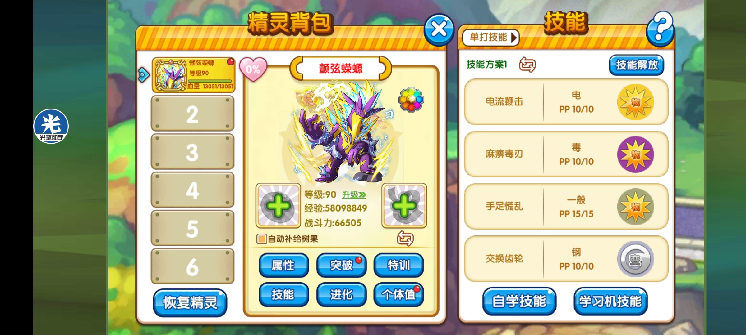 说明:这套技能搭配其实有点像请假王的打法,主要是以交换齿轮和手足慌乱为重点技能。先用交换齿轮以达到强化,然后在抗对面技能达到残血后,以手足慌乱打出伤害。经过几番强化和残血的蝾螈打出的手足,伤害是非常高的,而后面的爆音波/十万伏特是为了打耿鬼之类的幽灵系精灵。忍耐则是为了达到更极限的输出,忍耐1血,手足打出的伤害更高。