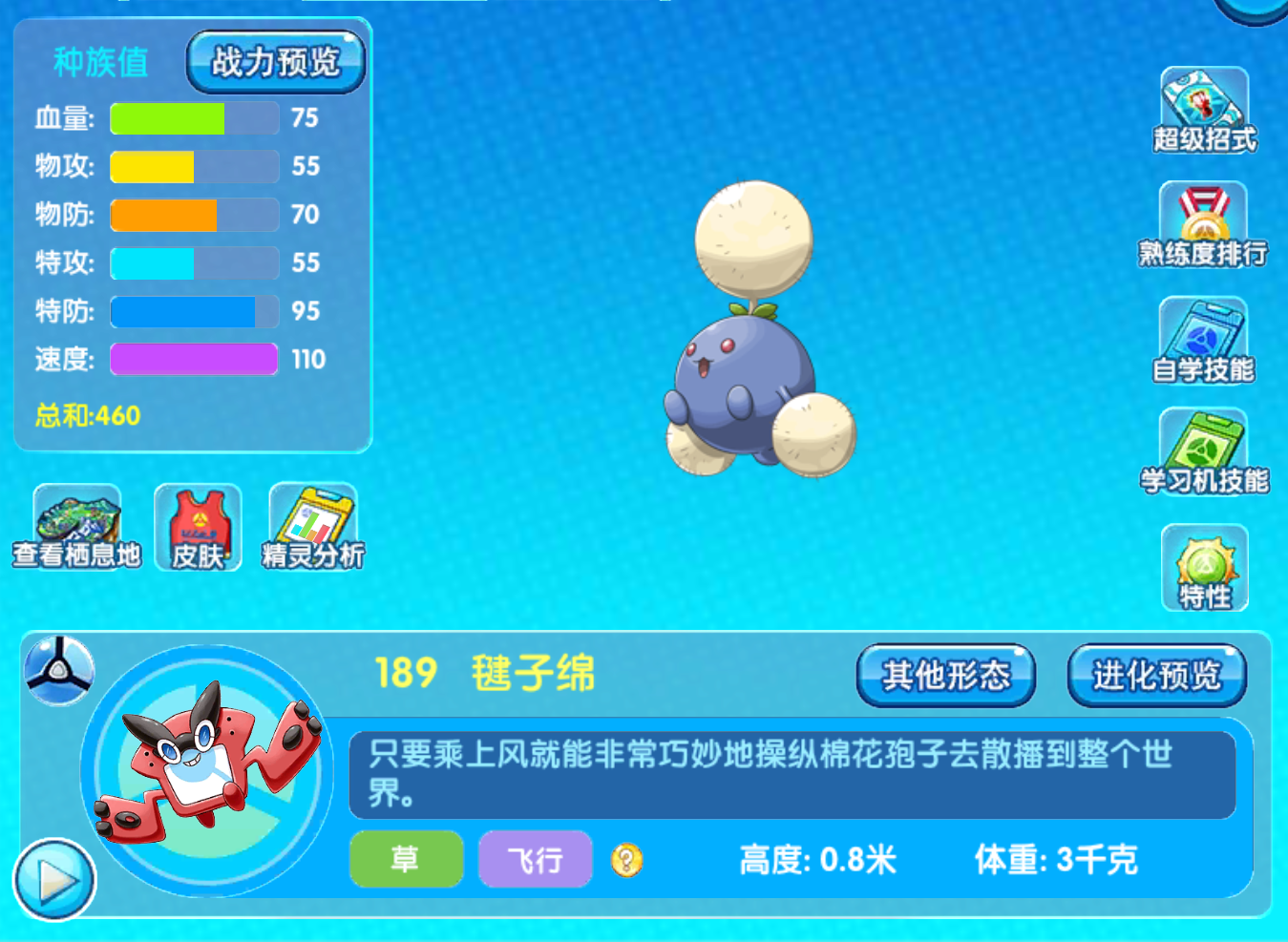 从整体属性方面来讲,毽子棉的优势在于速度非常的快,能够快得过90%多的高级狩猎场神兽,可以新手使用甜气,然后再喷雾的回合下,第二回合使用睡眠粉,同样也能够做到100%先手催眠对面