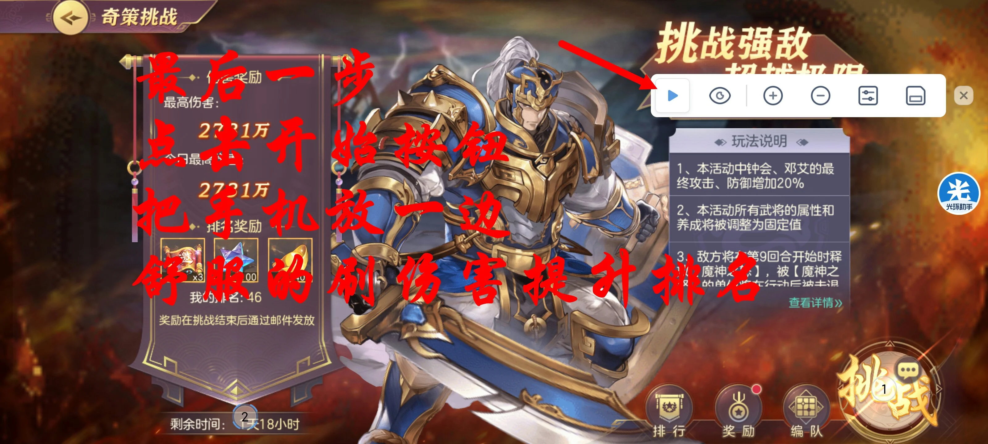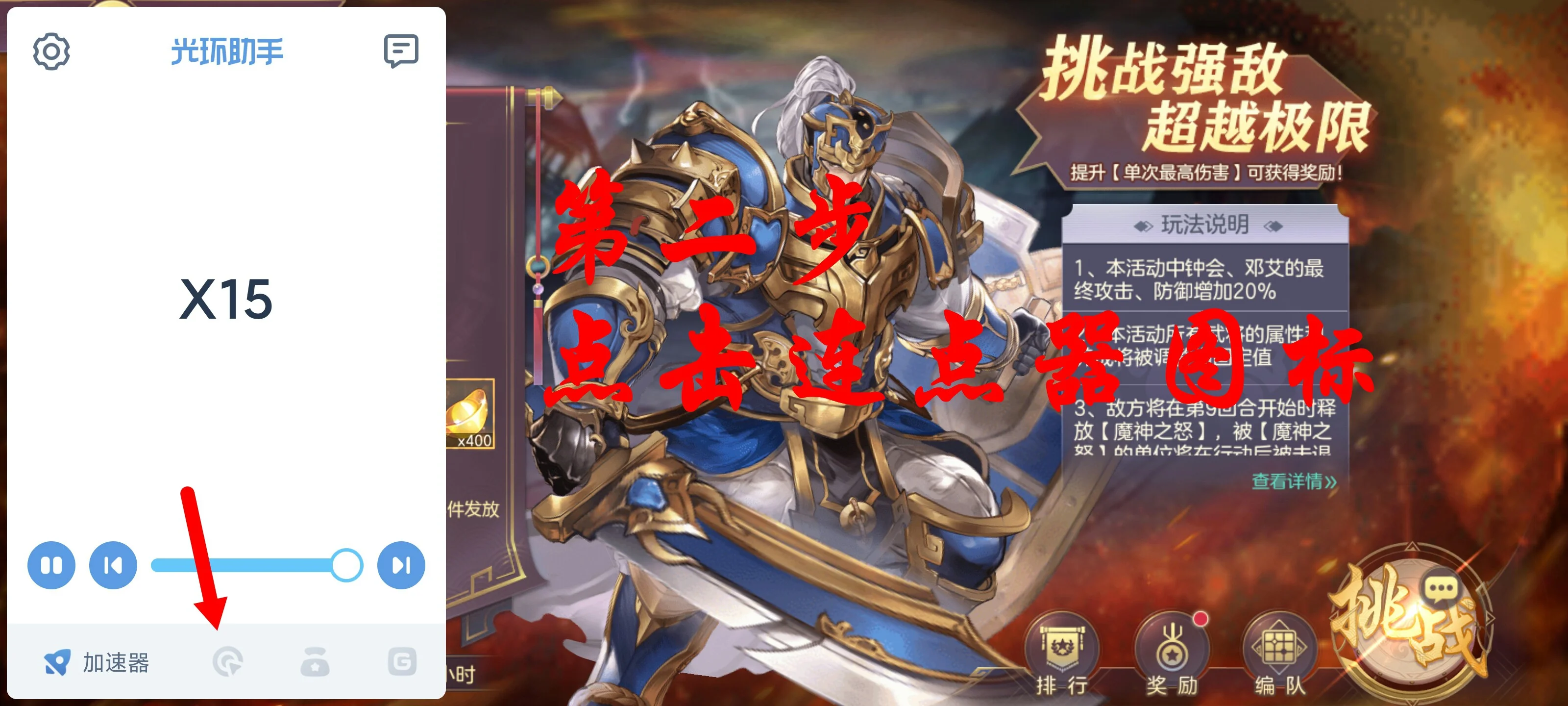 连点器使用指南,学会了你就可以解放双手刷排名了!MR.BAOLIAO发布于 2021-01-14关注PS:设置好后可以点击最右边的按钮保存起来,下次继续用就不用又设置触控点了。PS:原理其实就是新建触控点1.2.3.4.5.6,调整到对应的位置然后连点器会按1-6的顺序点下去,一般就是点1放在挑战,点2放在跳过,这样就可以形成一个闭环一直刷下去。最终效果视频:00:33