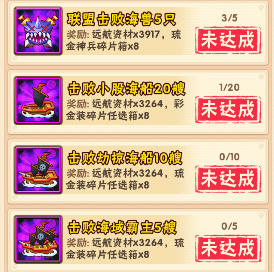 如果有时间推荐个人多根据成就任务进行探索,赠送的琉金神兵碎片/彩金碎片真不少,由于整体成就大多与联盟有关,如果自身实力不足可以帮忙探索迷雾开路,每次开路可以增加0.05%的探索度,也算为联盟做出贡献也方便联盟大佬攻打高战海船