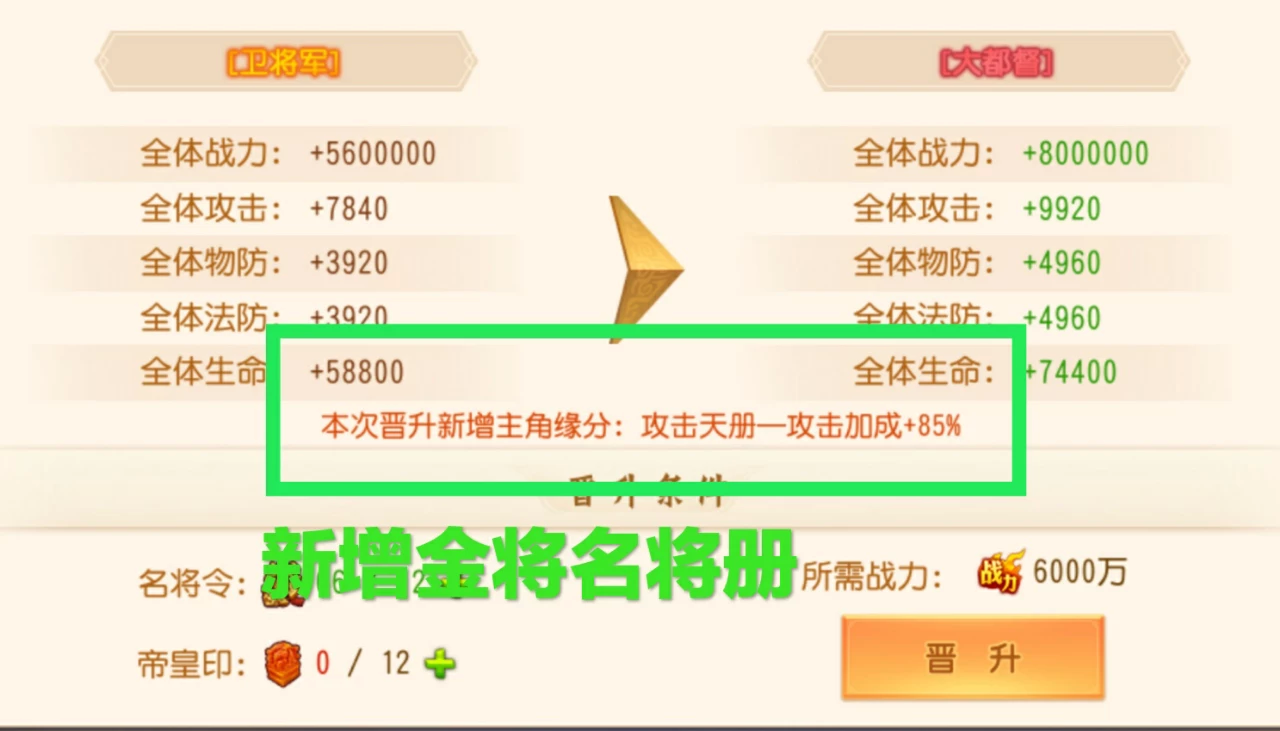 我想问问,我不开主角的金将名将册,我开上阵武将的,也需要官职大都督
