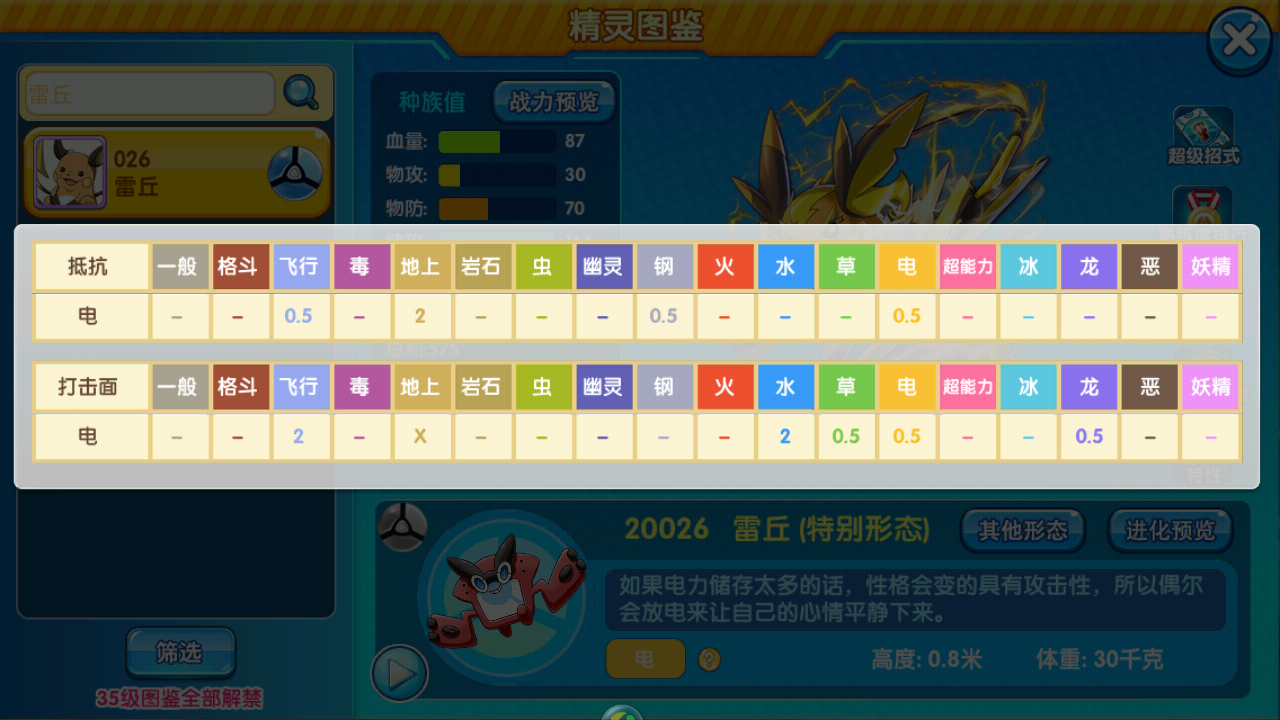 以上便是雷丘三个特性的详细解析了。个人推荐各位训练师们选择危险伏特这个高爆发的特性,这个特性能将雷丘对水系和飞行系的输出拉到最大,曾在数次对决中起到至关重要的作用。