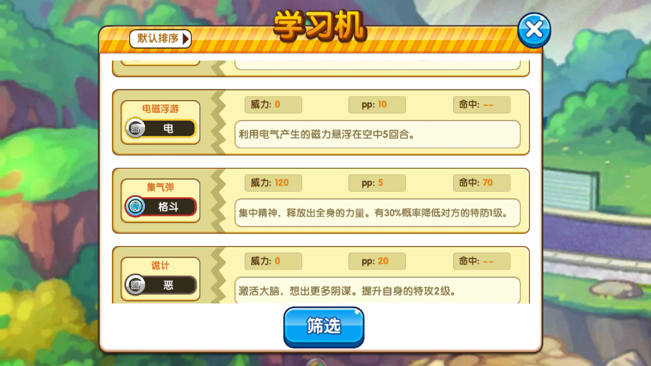 这是适合于磁铁命玉玩法的配招,电磁浮游的作用不可小觑,五回合免疫地面系技能(千剑齐发等技能除外)大大增强了雷丘的生存能力和反制能力,替身的作用比较优于电磁浮游,也是起到生存和反制的作用。诡计的大幅度强化,能够使雷丘毫不逊色于当年称霸一时的核弹鹿,此外也可以选择电返打游击。但是,要注意的是当对面有基格尔德和月神时不可贪恋强化!剩下一个技能可以补充打击面,具体分析在前面已经讲了,这里就不作赘述了。