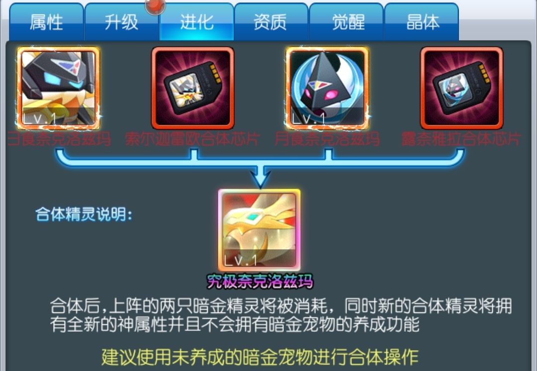 精灵合体之后,获得一个全新的神属性,但合体之后之前的养成属性不会继续存在,因此玩家在合成精灵的时候建议使用未养成的日月神。