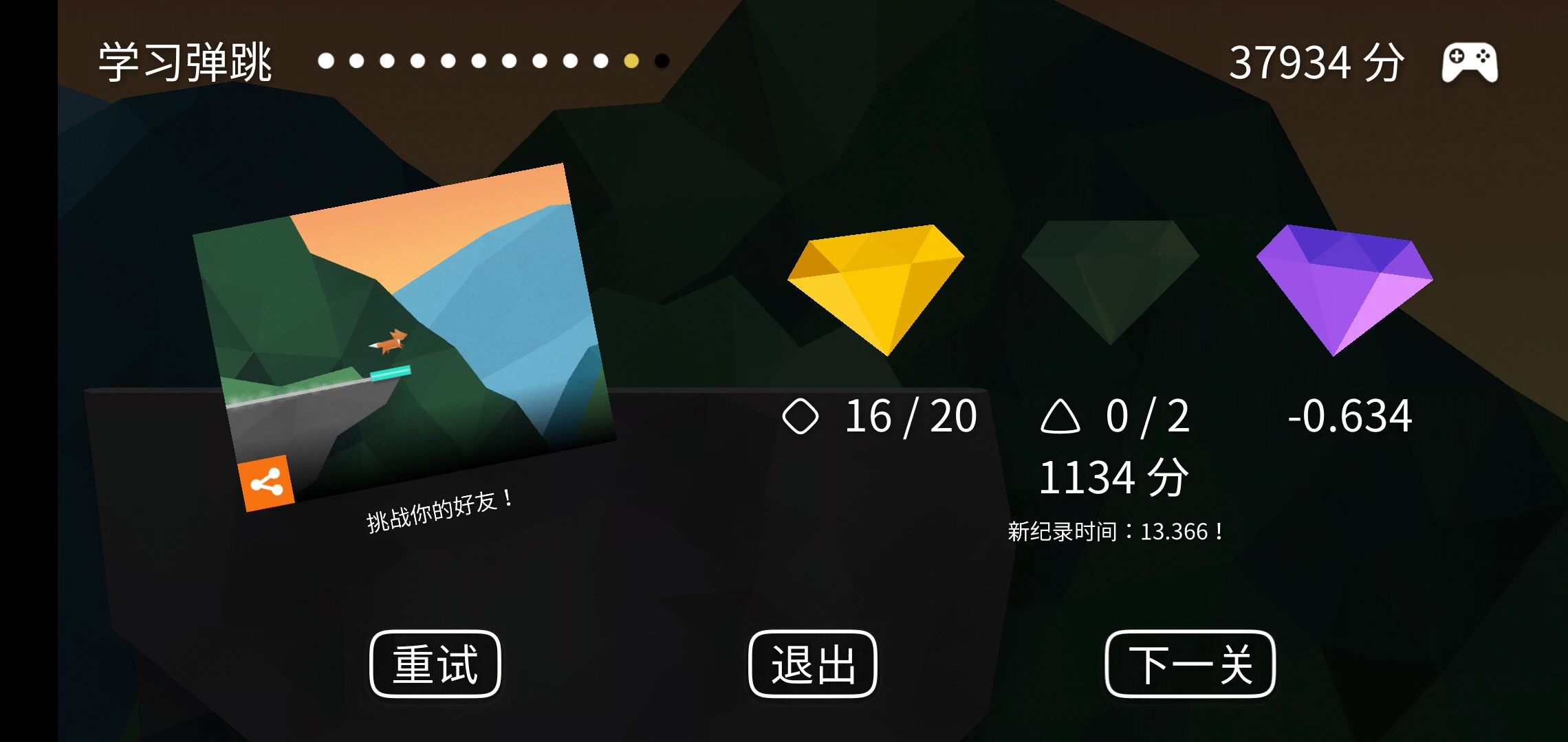 游戏的画面很简单,狐狸用简单的数学几何图形拼接而成,背景也是简单但又不失真。游戏的背景音乐非常带感,玩的时候很有感觉。