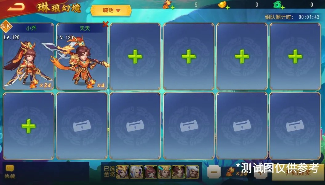 2、创建队伍的主公可以选择6名限定金将,每场琳琅幻境必出其中的至少1名金将,集结队伍的限定金将由队长创建队伍时指定,每个阵营至少选择1个,至多选择2个限定金将;