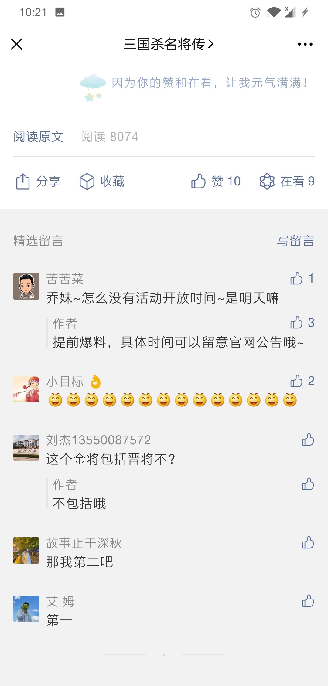 当集结队伍中有成员招募到金将时,其他成员可以点赞,点赞不限制次数,有概率获得奖励哦。