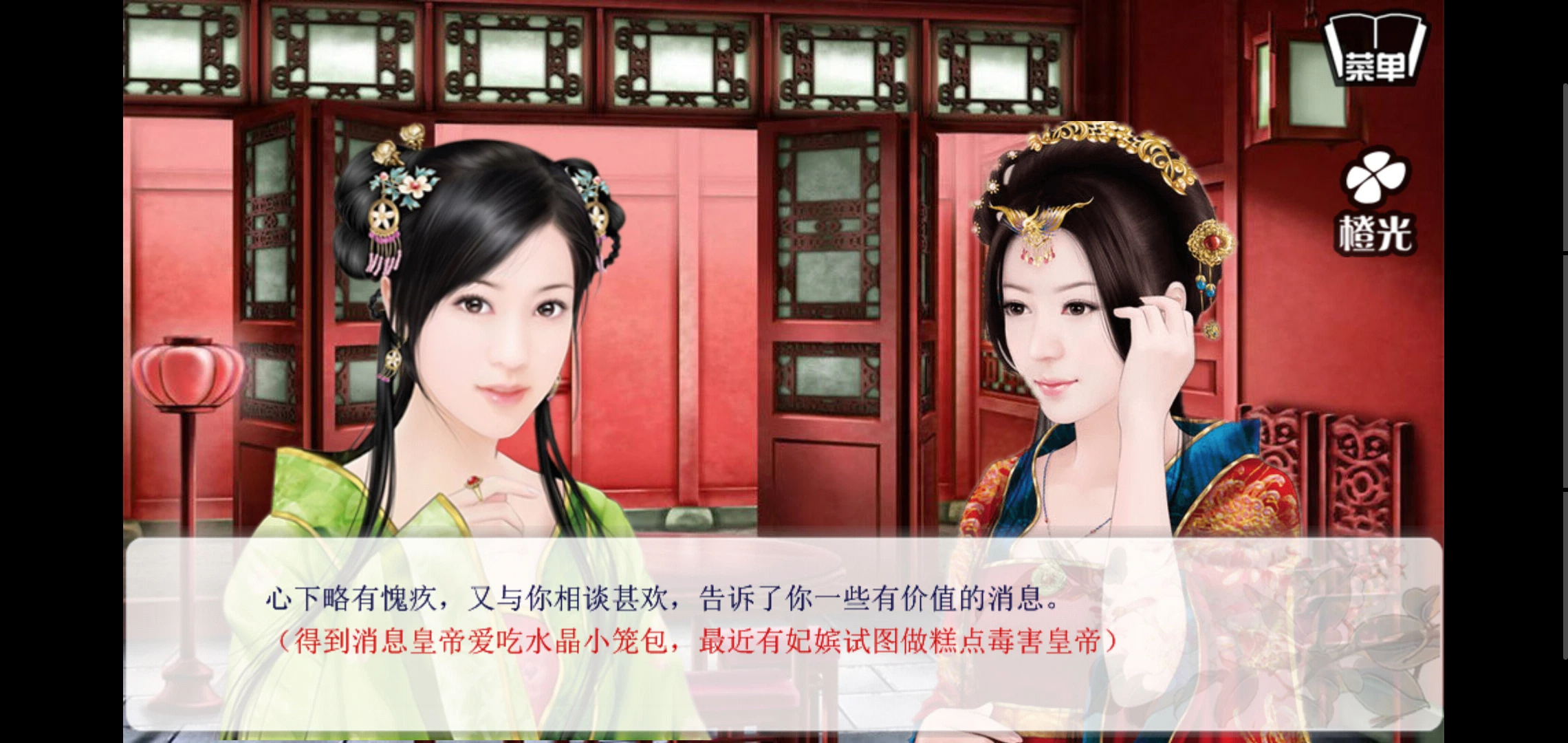 在后宫中呢,完事都要小心,入宫的时候要对嬷嬷毕恭毕敬,这样你才会得到有效的信息去获得皇帝的宠爱哦~还有,有一关是进皇帝的书房,一定要为他揉肩!其他的后果都不好!