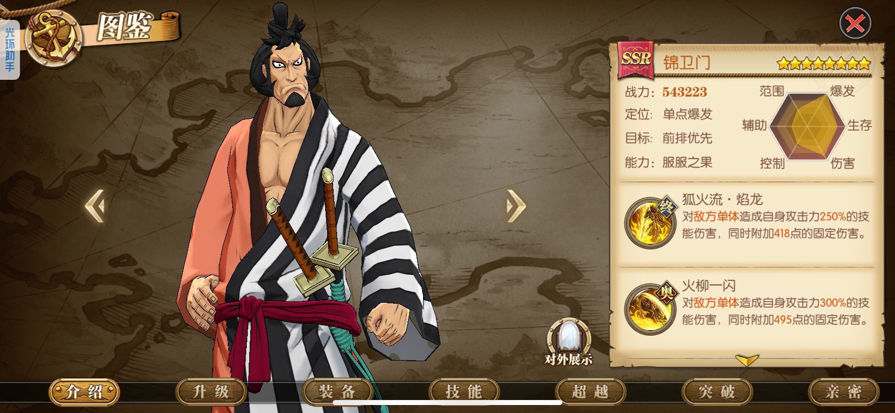 锦卫门是活动赠送的绝版限定人物,老区的玩家基本人人一个,新区的朋友只能了解啦,锦卫门的定位是主线人物。锦卫门核心天赋是8星赤宵九侠:奥义技能命中时,可获得灭龙效果,使自身怒气增加,且下一个奥义技能伤害加成提升,在非玩家对战时,提升效果翻倍。锦卫门再搭配奥义技能被动孤立无援,敌方阵营仅剩一名角色时,伤害能获得更高提升。所以锦卫门的单体输出能力非常强悍。锦卫门的主线使用效果时,所以玩家点赞的,谁培养谁知道,主线能力、悬赏能力都是一线的伤害,并现在新出的限定人物都偏群伤人物,如果要单独想享受过主线,剧情玩家的,那么锦卫门这个输出人物推荐大家培养。
