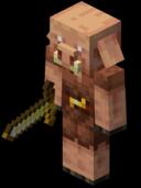 2.攻击力更高的猪灵种类,手持金斧,并且总处于敌对状态,见人就砍,即使玩家穿着金制盔甲也会发起攻击。
