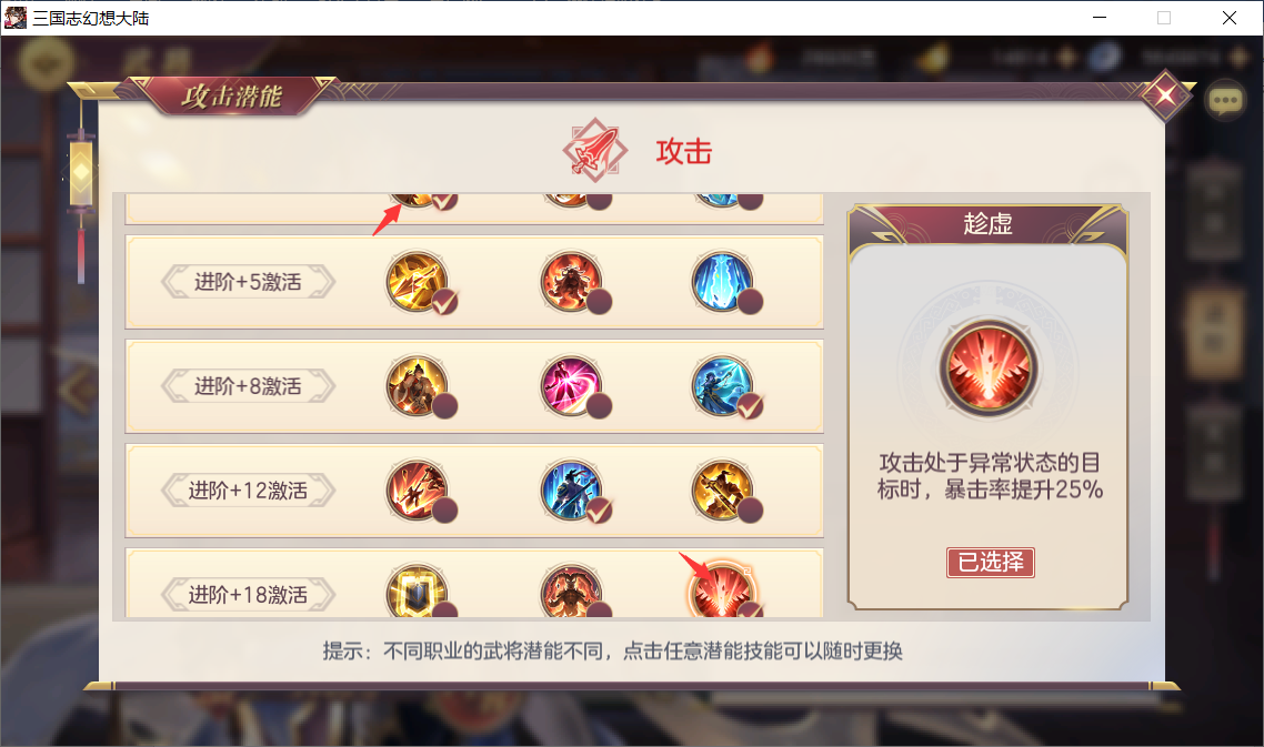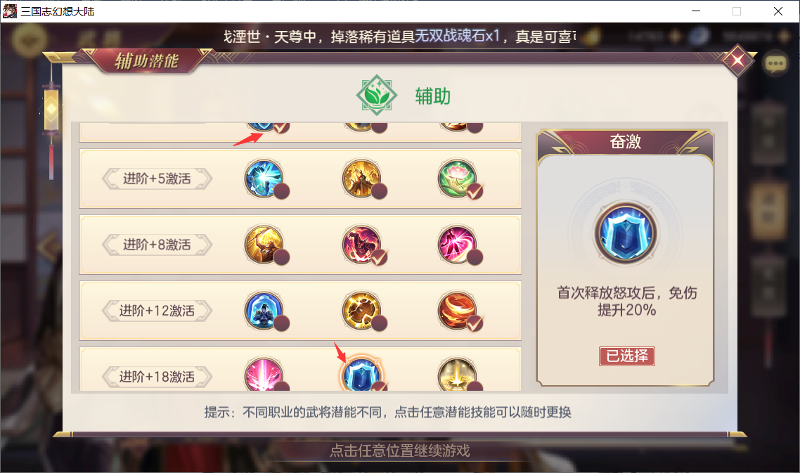进阶3点怒攻伤害加成也可以~推图建议第二个,进阶12推图第三个。