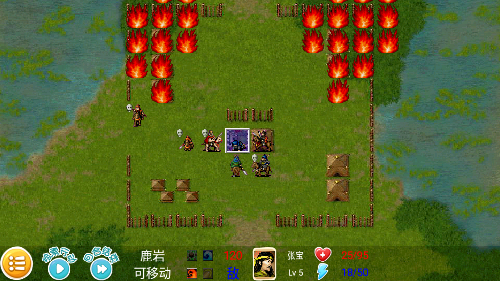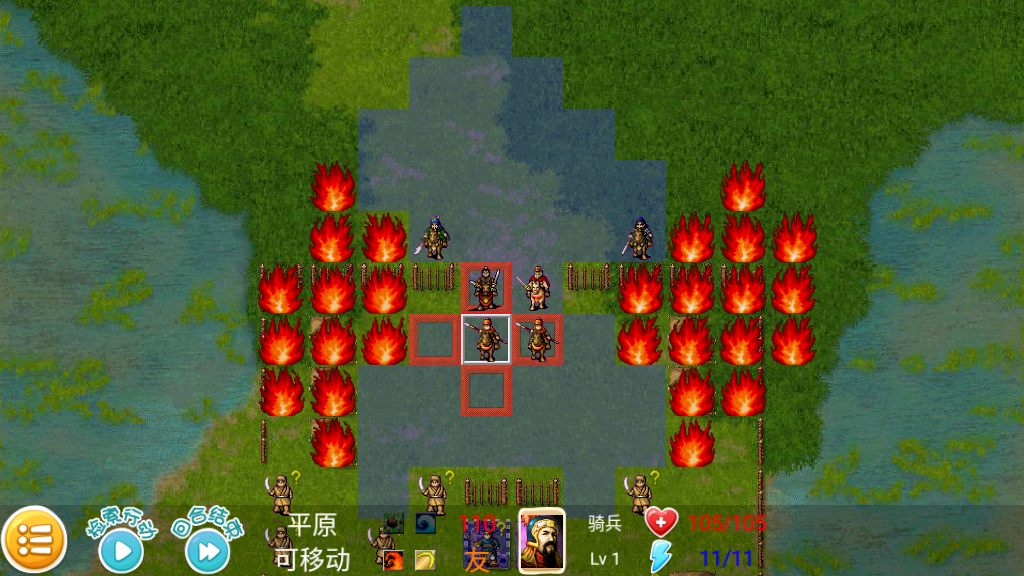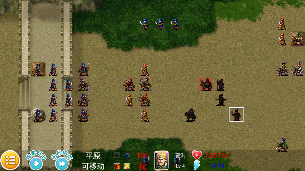 虽然友军有很多,但是能操控的只有曹操一个人。到自己的回合时,与一般回合制游戏一样,先对角色进行移动,然后可以攻击、使用法术、使用道具等操作。