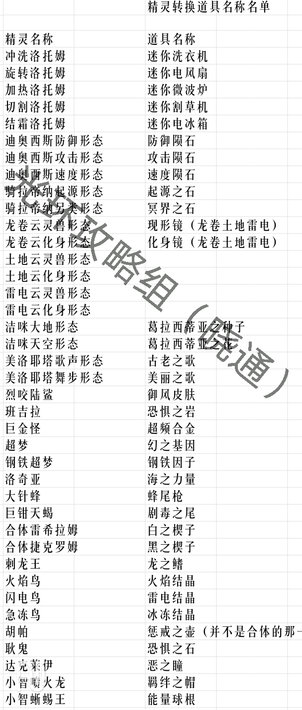 这些名单里面标注的精灵转换道具都是可以直接转换成精灵的最强形态