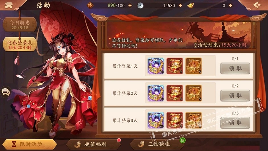 每日登录,签到领好礼,元宝、养成资源、银币天天领!
