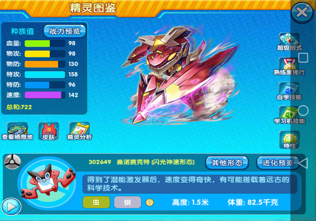 总结分析:盖诺赛克特自从出现新的形态之后就一发不可收拾,,你跑专属特性,神速军团,然后再配合技术破坏,真可以是秒天秒地秒空气,伤害可以说是十分的高,技术破坏可以通过卡带来调整属性,一共有四种属性,分别是电、冰、火、水,而且每一种技术破坏都会有本系加成,所以说,在盖诺赛克特泛滥的版本里面,无论是平民还是土豪,都是人手一只,但是他的这种强度持续不了多久,随后便出来了反射网,这才让盖诺赛克特的环境得以改善,虽然说现在不是重神的版本了,但是还是有不少玩家在坚持使用,目前的定位主要是收割或者是骚扰,利用寄生水蛭和死缠烂打可以抓住对面没有克制自身的精灵。在最后我想说的是,反射网的出现会对盖诺赛克特的环境造成很大的影响,所以玩家们在打PVP的时候,一定要注意对面有没有反射网,好的方法就是让队友先吃掉反射网,这样的话,盖诺赛克特才能够有输出的环境。