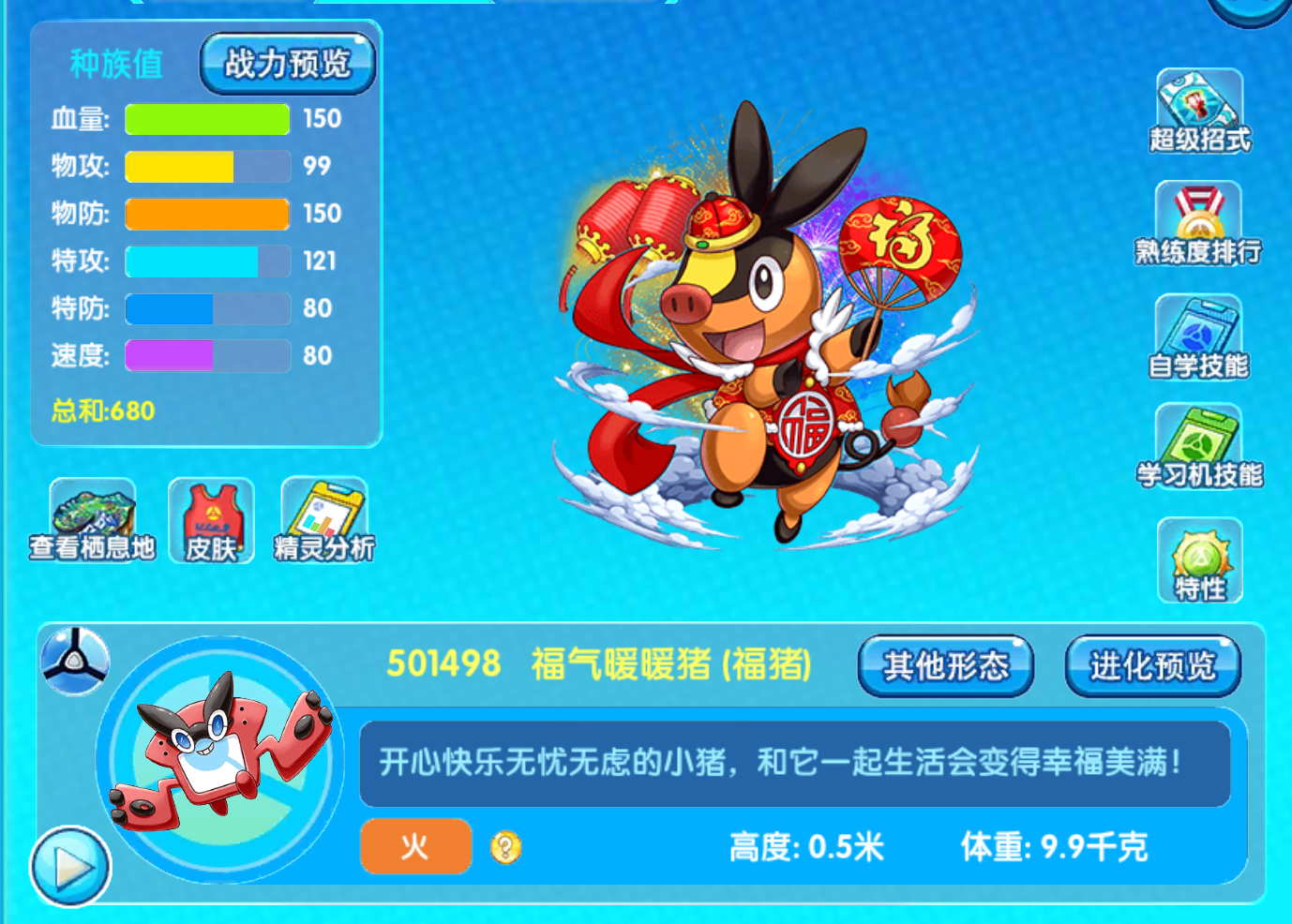 那么这个宠物的玩法,我本人建议就是可以选择这套辅助搭配的,甚至是未来这个宠物一旦加强,可能就会变成一个很强大的辅助宠物,因为这个宠物以自学接棒的,而且它本身也可以学习诡计,如果让他强化起来,然后把状态给白龙,可以说是非常的强,而且这个宠物也有一定的肉度,你看他的种族值,虽然说是水桶腰,但是防御能力还是比较高的,所以说这个宠物换了绝对是不亏的,我本人已经决定兑换了😀😀