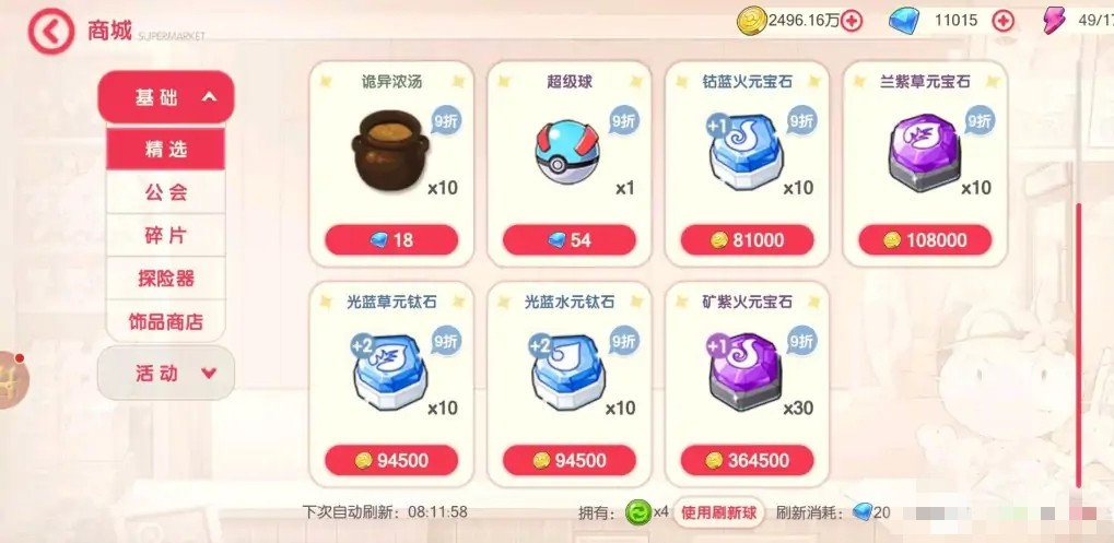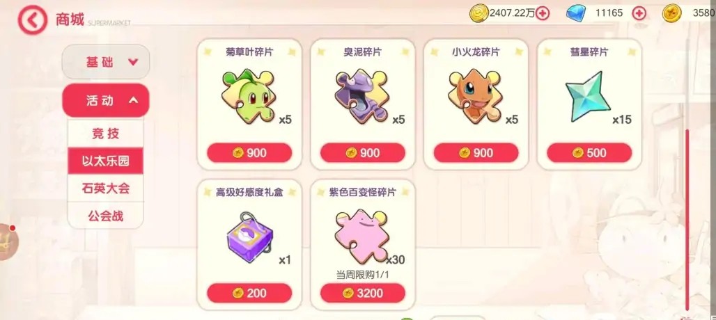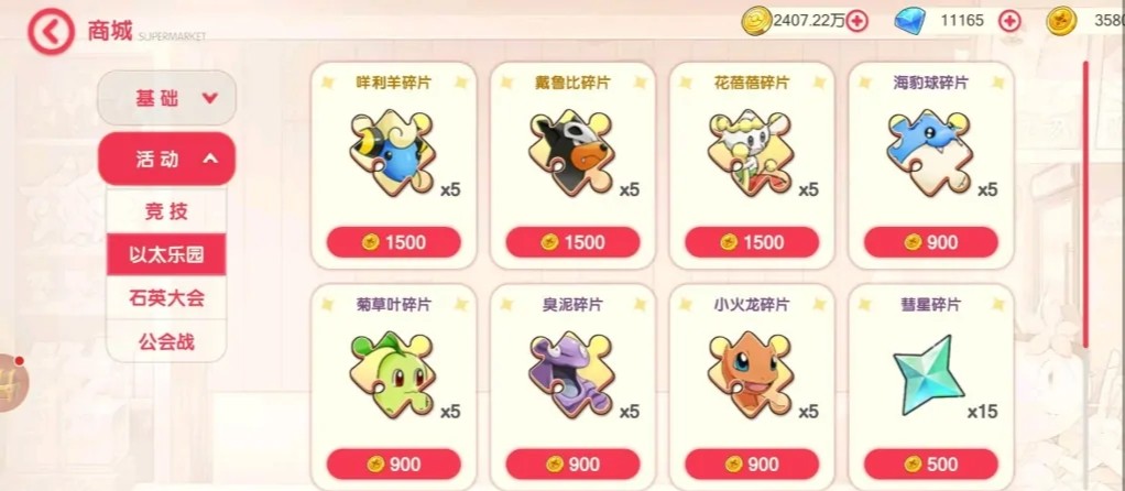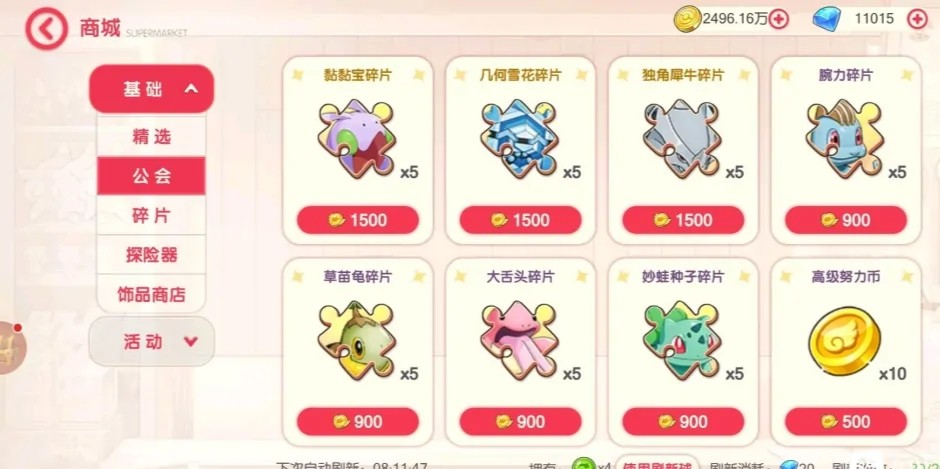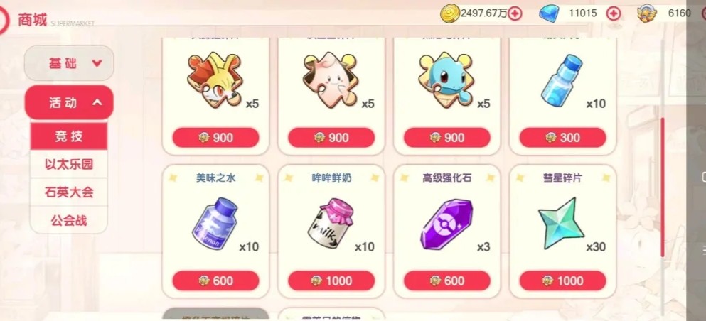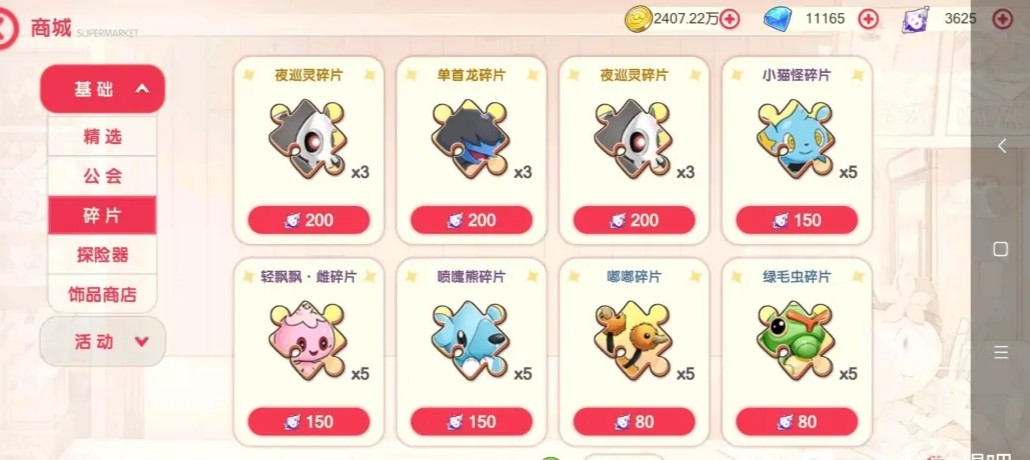 优先买羁绊所需精灵的碎片,尽量在最后一天把精灵合出来!羁绊加的战斗力也非常高!记住是合成!不是去抽!合成需要的碎片除了在这个商店,还可以在公会捐献里面获得。