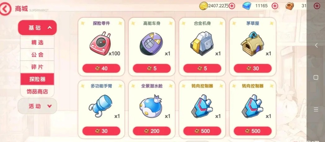 在钻石消费出来的时候开始抽!时间点也非常关键我们讲究效率,然后第6天或者第5天,看自己哪些探险器缺哪几个零件,就买那几个缺的,这总不用细说了,大家基本都会