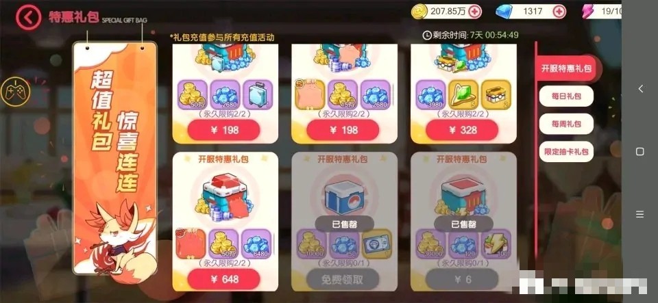④剩下的四个礼包性价比偏低,建议小伙伴先把其他的礼包买了再考虑这些