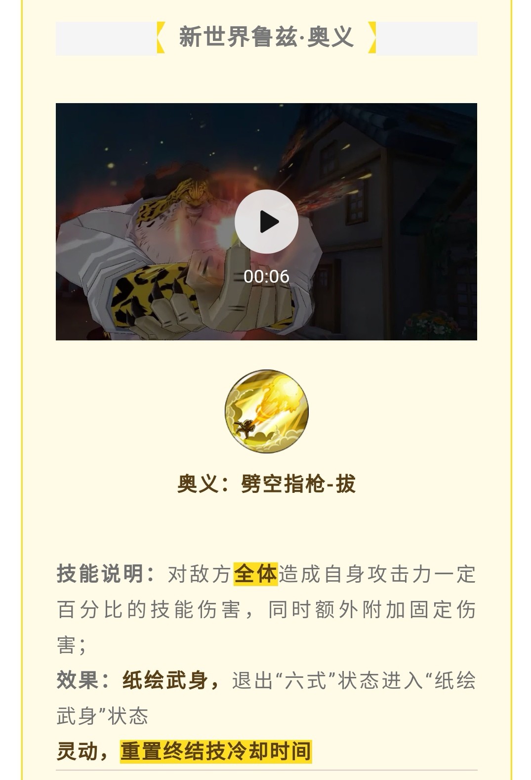 3.终结技无视格挡和闪避,但是都是单体技能,很难保证能打到赤犬,大妈等需要豹子处理的角色上