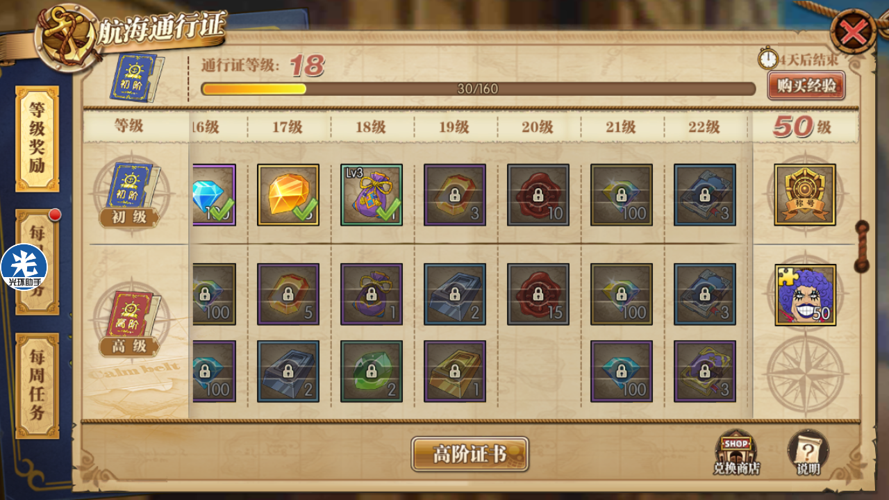 这里我建议多花200彩钻,也就是1880彩钻买一个高阶的通行证,多升一点等级,多拿几个英雄石头和精炼石头。通行证可以提供大量的金币,经验,少量的金魂,彩钻和宝石。以及一名新的SSR伊娃提供一些金魂、强者招募卷和蓝钻。