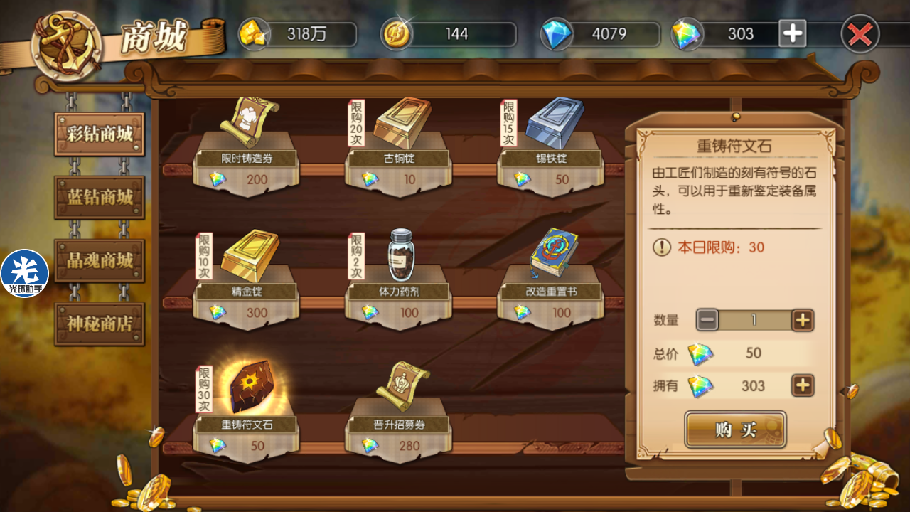 首先呢,我并不推荐一些攻略作者推荐的什么:拿彩钻买宝石袋,拿彩钻买公会贡献,公会水晶,280彩钻一张的强者卷。平民的彩钻本来就很稀缺,更何况以上几种彩钻消费性价比极低。