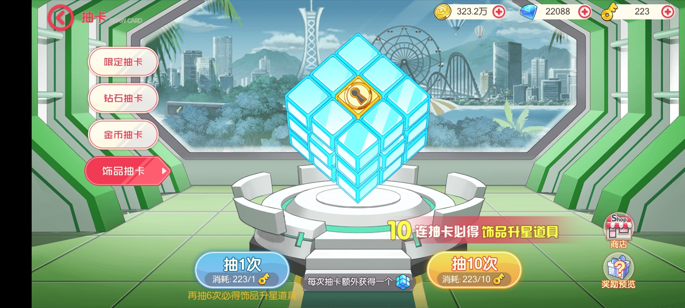 No.1饰品抽卡,平时只需要抽1次免费的(欧皇单抽出苹果说的就是这个),把金钥匙存起来,等到存够150或200,参与饰品活动(每月1次),抽取150次可获得1个紫色携带随机箱子,200次可获得1个紫色万能石可用于突破。在这里赵云建议存够200个再参与活动,毕竟多50次就可获得1个万能石,性价比非常高。