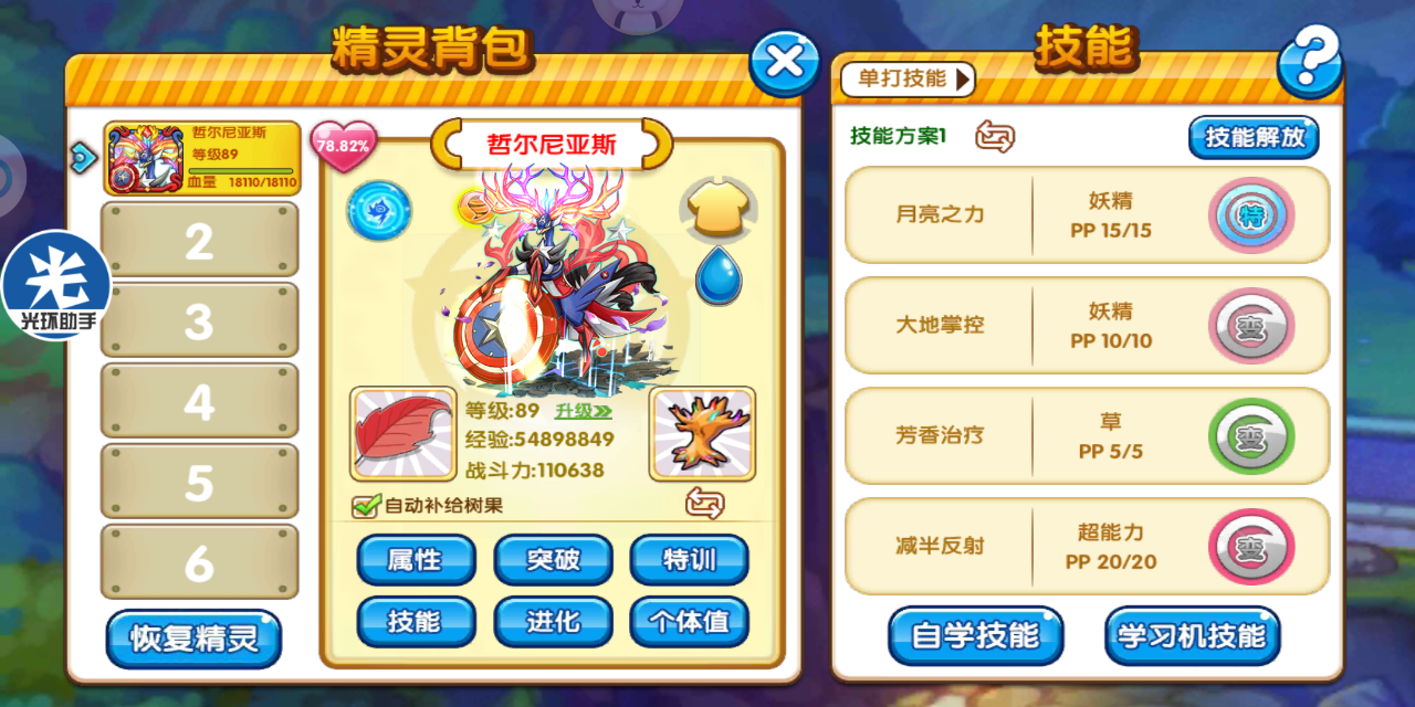 X鹿大家都知道它拥有的特性自然恢复,这个特性可以让它陷入异常状态后下场就可以回复,那么我们就可以利用睡觉来做到无限切宠回血了,尤其配合技能芳香全队的异常都可以不用愁了,这样也曾经延伸过一种流派,就是全队睡觉让鹿回复,在没有天敌克制的队伍中真的让人郁闷,你把对方打的都残血不行了,然后对方一只只都睡觉,最后一个X鹿来个全队回复,得了,又得重新和对方全队满状态打,这搁谁谁不郁闷,不过这种队伍随着后期黑龙白龙的增多,现在也很少见,毕竟遇到这两个合众代表神基本就半废了一半。