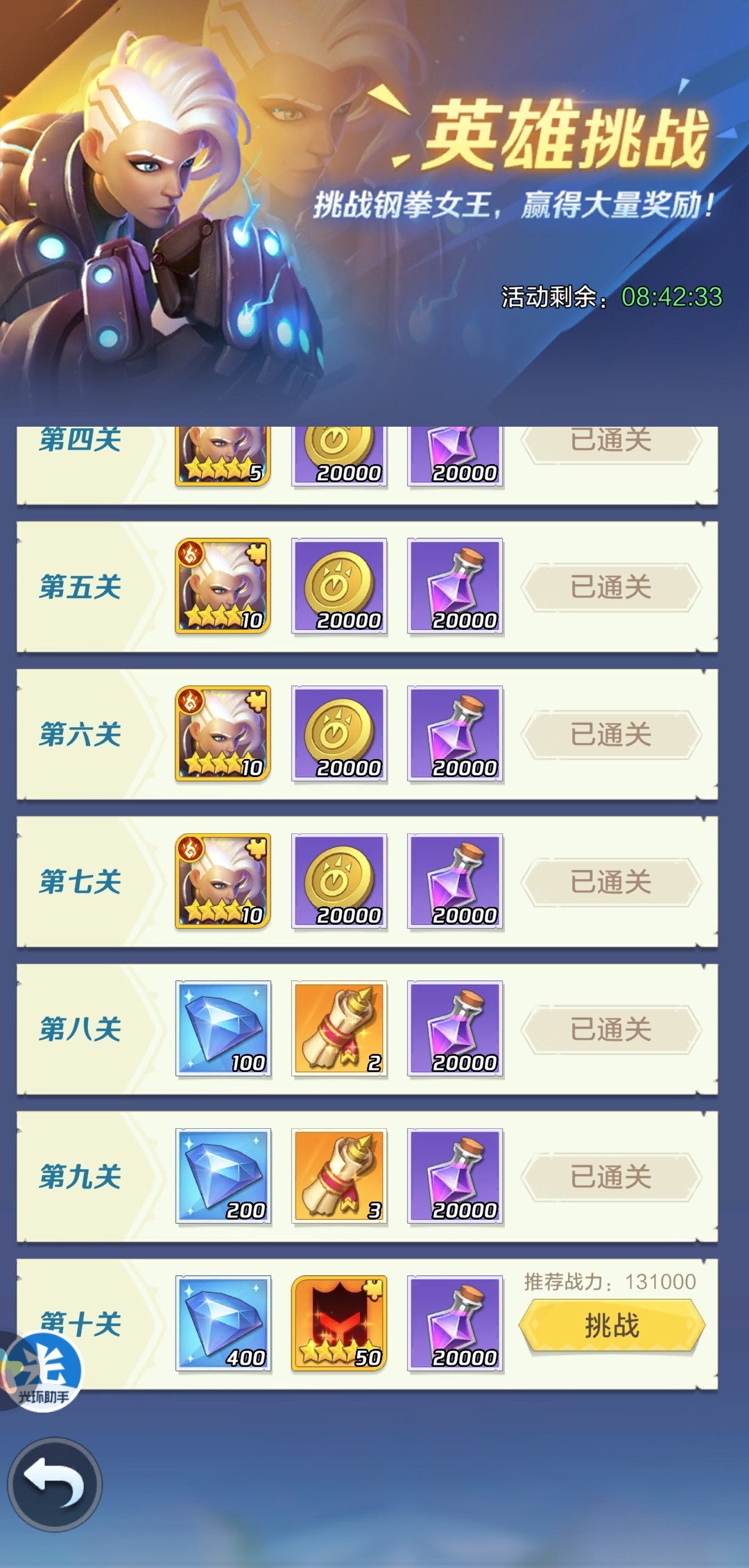 比如英雄挑战,第二天鱼头就通过了第九关,【蔷薇】加上【魅影】前期输出能力还是可以的,一分钱不花的哟。