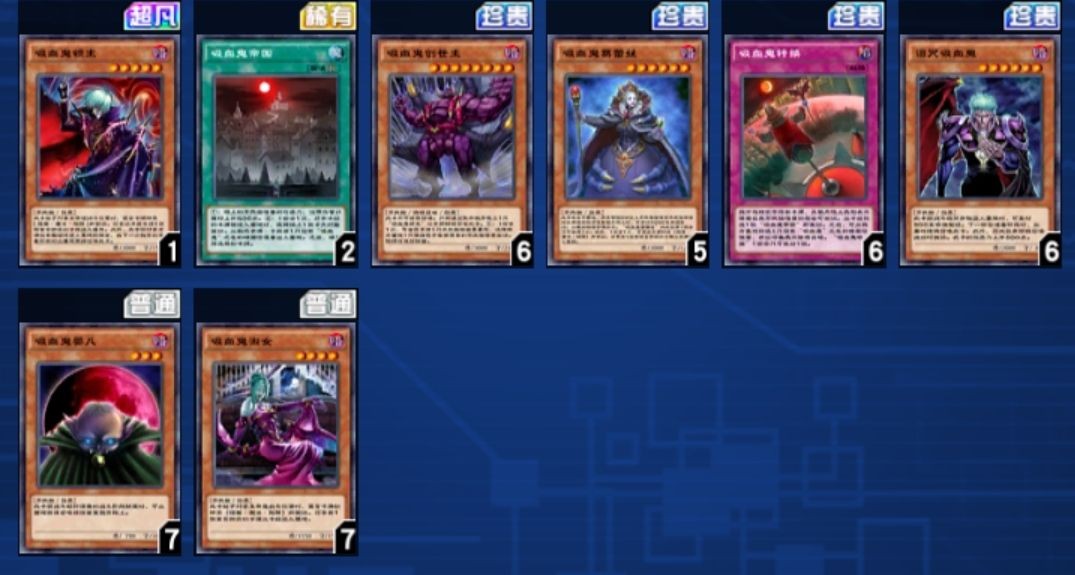 吸血鬼系列作为这个卡盒的主打卡盒,也是卡盒的重头戏,如果你想玩这套卡组一定要抽三轮的,别问为什么,问就是牛头鬼满三。