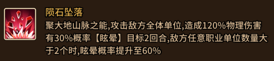 你上阵的英雄任意职业超过两名单位时,眩晕概率就会提升到60%!!!以系统那恶心的机子基本上是全局眩晕,动都动不了,所以一定要注意职业搭配,最好是两战一法两辅,或者是两法一战两辅都行,甚至上阵一个坦克也可以。
