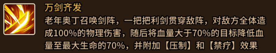 老年奥丁最烦的就是他的禁疗效果,搭配一定要好,才能及时把他的禁疗效果解除,然后你的续航才能够跟得上。第二个就是吸取是不受禁疗效果影响的,这个我在符文的解说里面已经说过了,你只要输出带上吸取,用一个娜迦带四个输出基本就稳了,娜迦也主要是用来加 buff的,顺便第一回合净化解除禁疗效果,而且有一个复活又会比较稳定。第三个就是精灵,精灵的输出还有净化效果根据他的行动模式来适当调位,加上辅助的净化,是可以及时把禁疗效果清楚的,即便你带多个奶妈也能过,但至少要有两个输出,并且要对单体能够造成比较高的伤害,不然的话伤害不够。