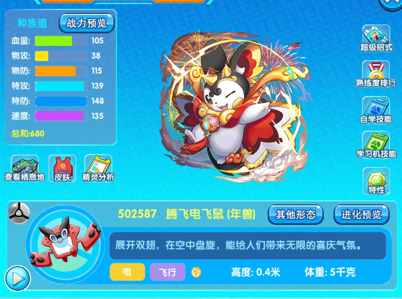 所以说先在版本腾飞电飞鼠的处境不算是特别的差,但是也不算是特别的强,最主要的核心原因还是他的种族值分配有着很大的问题,简直就像是胡乱搭配的那样,丝毫没有仔细安排过,不过这个宠物毕竟是一个吉祥物类型的宠物,就没有必要让他有多强了,除非未来出现新的形态,可能整体强度才会有所提高吧!