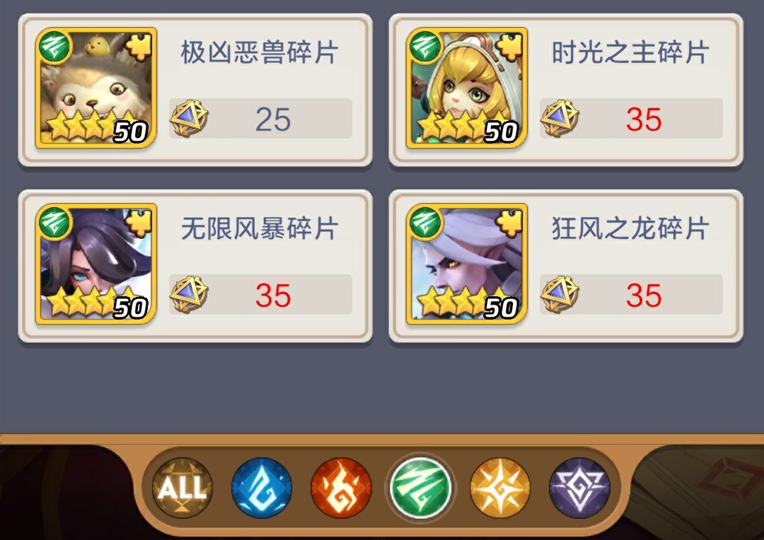 而我的元素核心的资源又得培养龙姬,再想提升只能把开局第一天送的魅影之箭吃掉了,所以当英雄发展到了九星(四颗红星)后,平民玩家会有很长的一段时间都是在积累核心英雄的本卡,不断的收集狗粮。