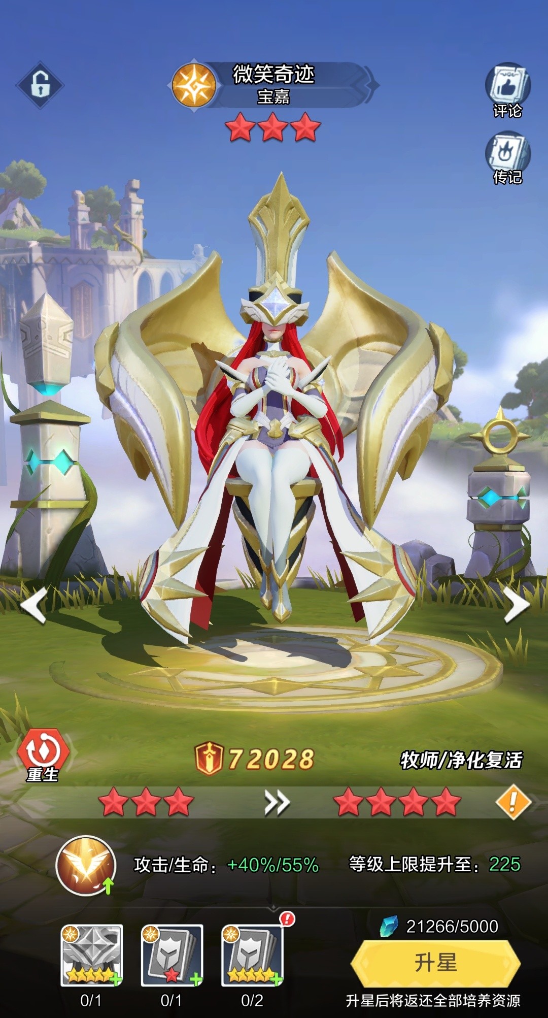 轮回骑士升三红星的材料已经跟不上了,微笑奇迹勉强到了三星想再往上升狗粮严重不足。