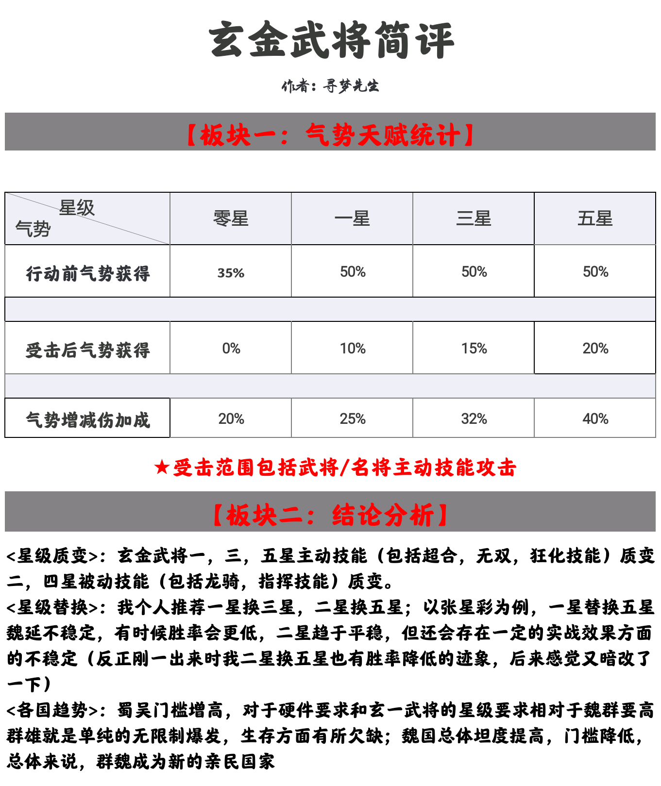 <星级质变>:玄金武将一,三,五星主动技能(包括超合,无双,狂化技能)质变;二,四星被动技能(包括龙骑,指挥技能)质变。